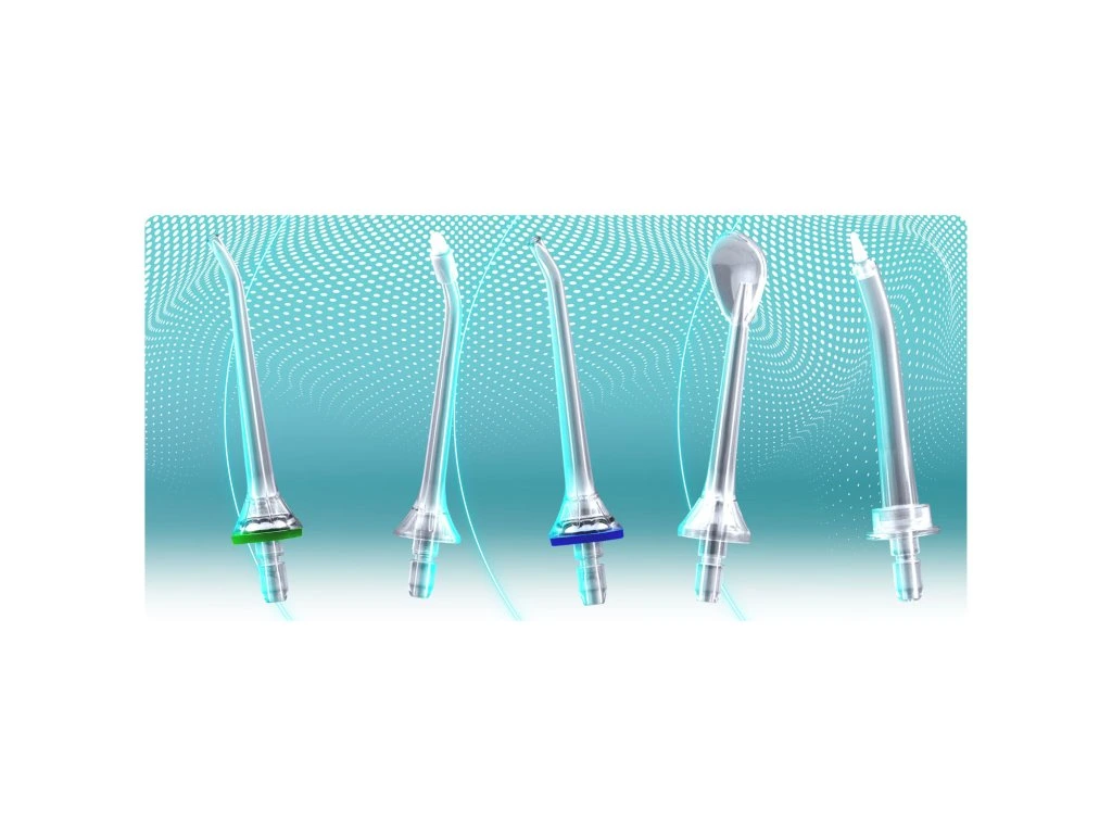 - 5 FÚVÓKA – 2 normál fúvóka, nyelvkaparó, fogszabályozó igazító és periodontális tasak permetező