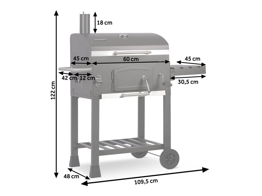 Állítható szellőzőnyílás: lehetővé teszi a légáramlás szabályozását, így a grill belsejének hőmérsékletének szabályozását is, ami elengedhetetlen a hosszú grillezés során.