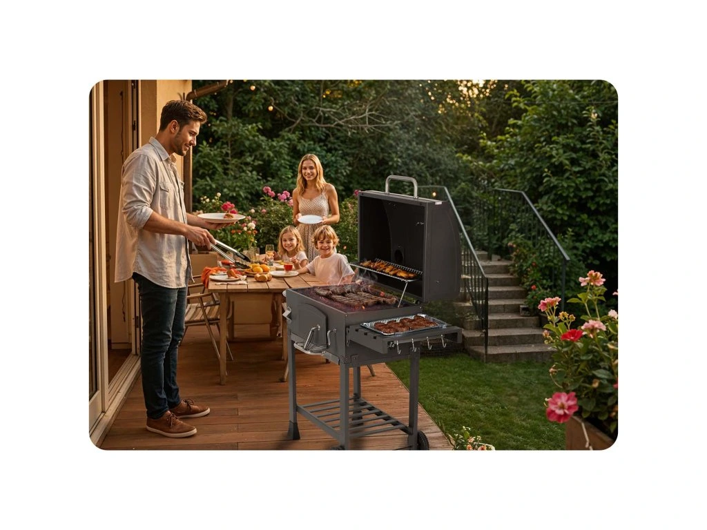 Felejthetetlen találkozók — változtassa kertjét társasági központtá! Grillünk vonzza az együtt töltött pillanatokat a finom ételek mellett.