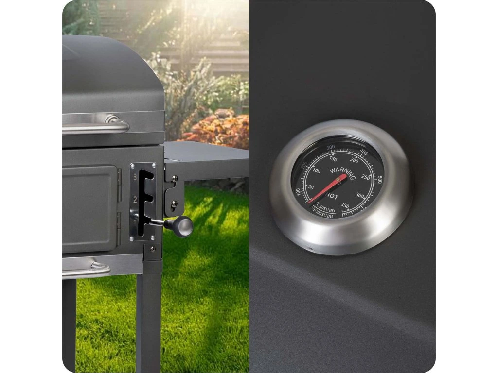 Beépített hőmérő: lehetővé teszi a grill belső hőmérsékletének pontos figyelését, ami elengedhetetlen a különböző ételek pontos főzéséhez.