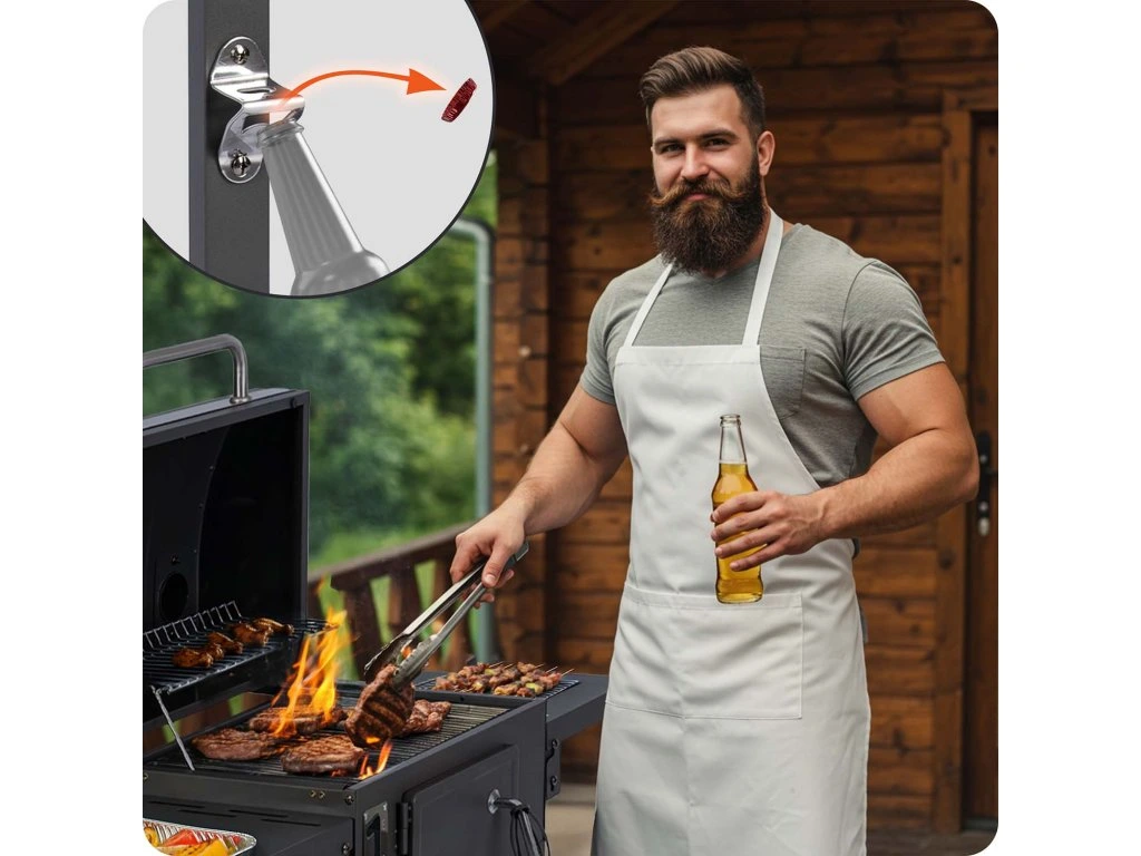 – stabil, egyenletesen melegít és intuitívan működik, így a grillezés tiszta öröm! Nincs stressz, csak íz és jó szórakozás.És ráadásul beépített italfelnyitóval rendelkezik, mert tudjuk – egy hideg ital a kézben alap. Stílus, kényelem és teljes lazítás a grill mellett!