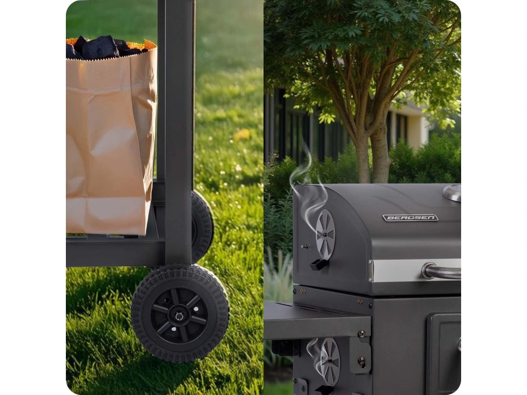 Szabályozható légtérjárat: lehetővé teszi a légáramlás szabályozását, így a grill belső hőmérsékletének szabályozását, ami elengedhetetlen a hosszú grillezés során.