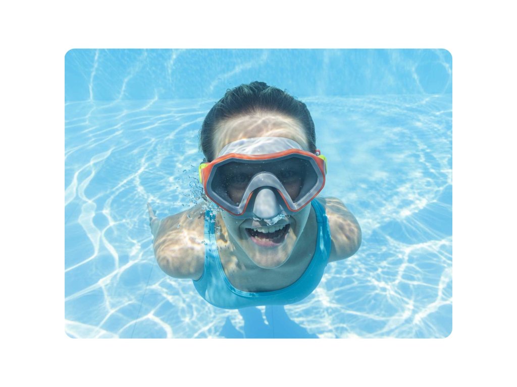 Most már búvárkodhatsz, és élvezheted a vízi szórakozást a végletekig! Az úszómaszk polikarbonát lencsékkel rendelkezik.