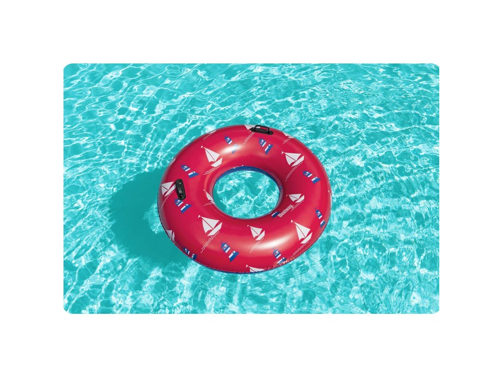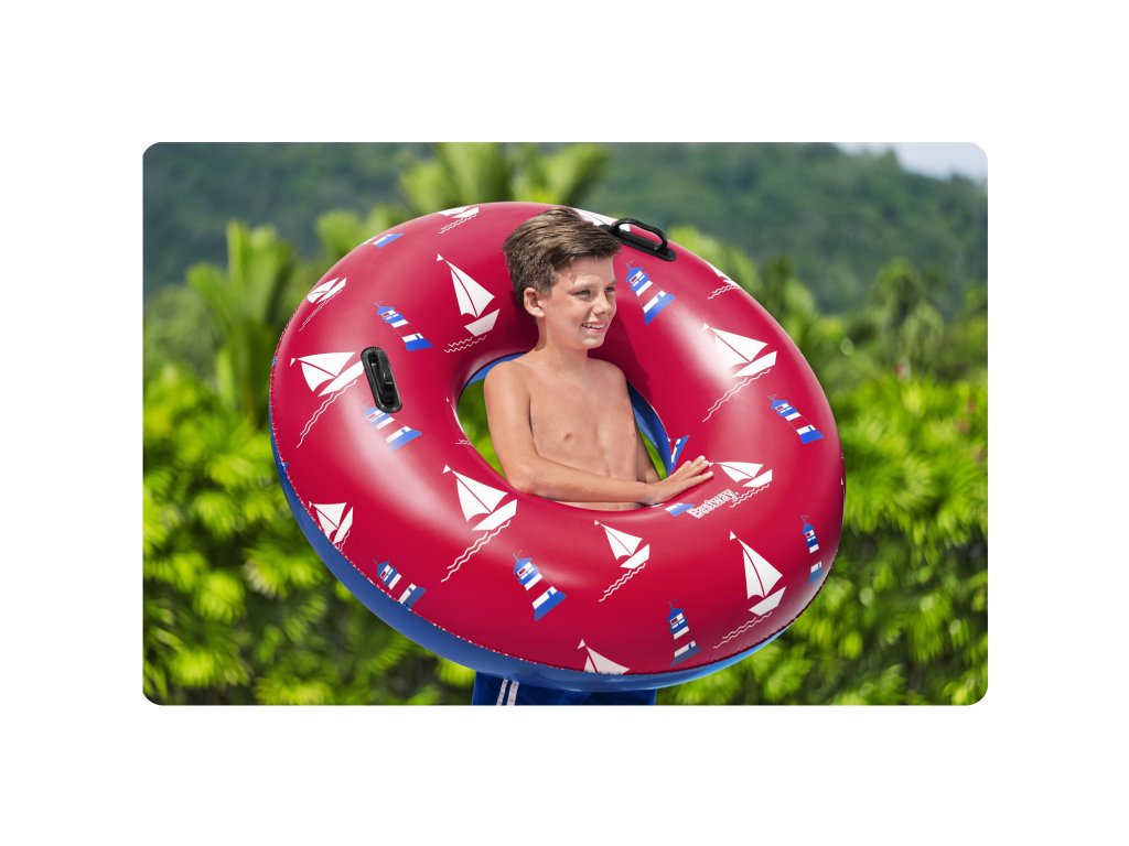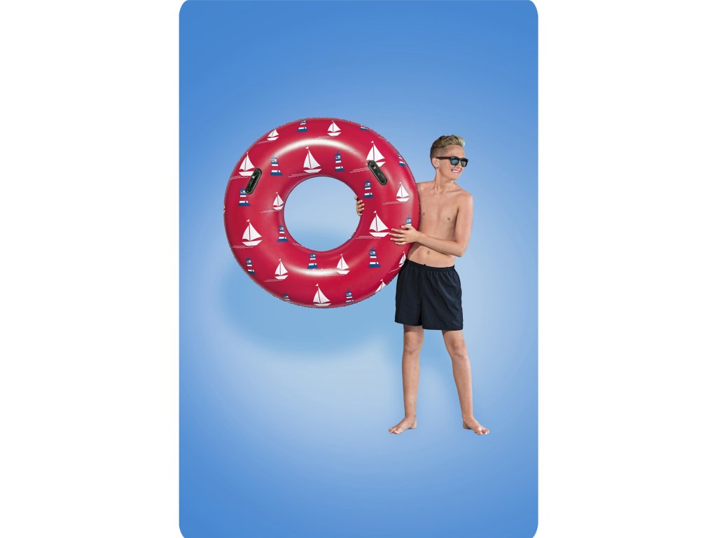 A hajómintás kör nagyon praktikus, kényelmes, és ráadásul remekül mutat a strandon. Tartós PVC-ből készült, amely ellenáll a napsugárzásnak és a sós víznek.