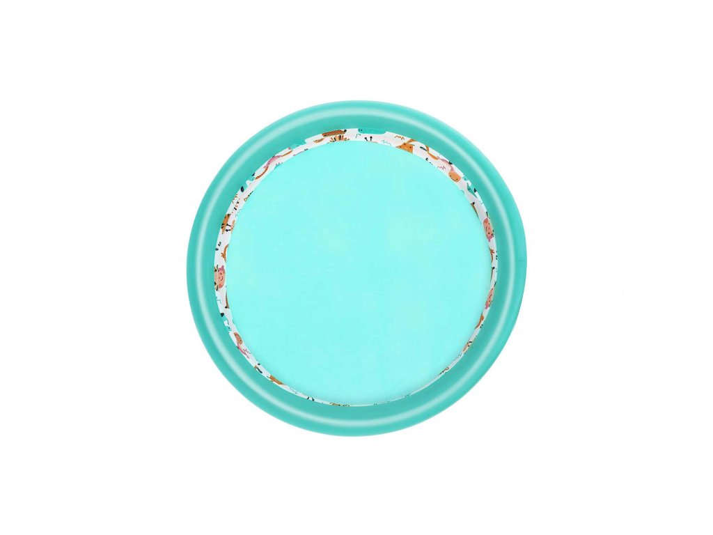 A medencének puha felfújható falai vannak a kisgyermekek számára, és gyönyörű színes megjelenése.
