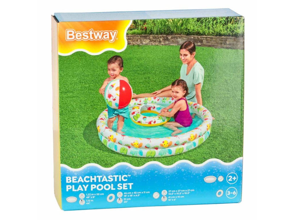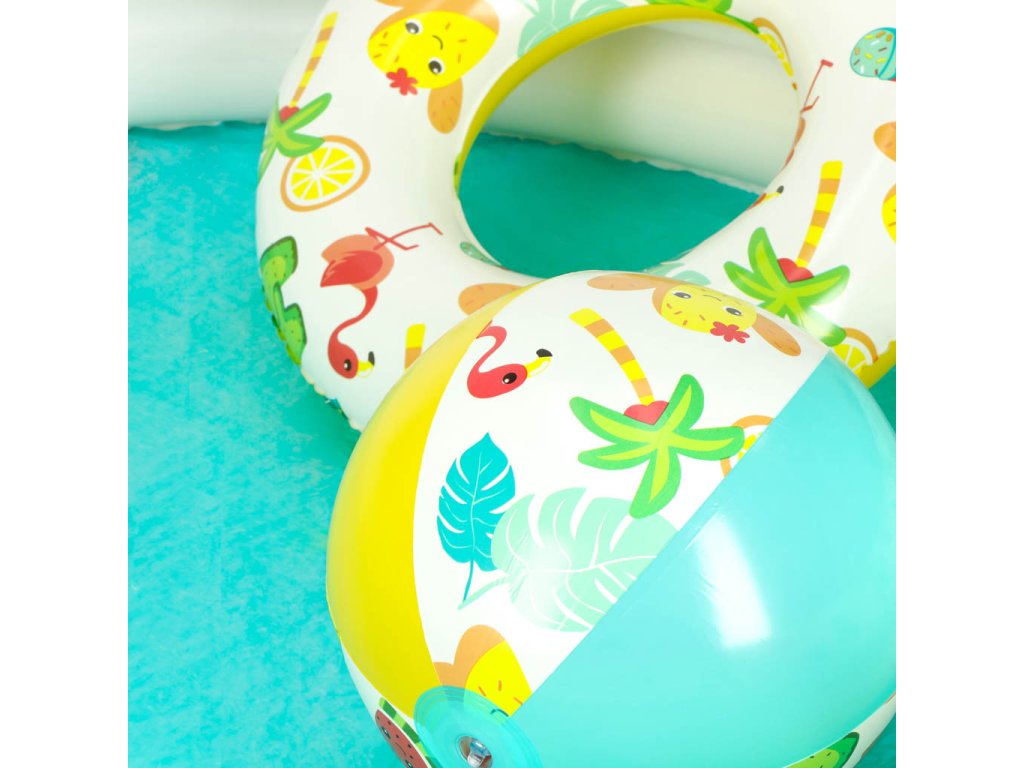 A 46 cm átmérőjű kör 3 és 6 év közötti gyermekek számára készült. A 27 cm átmérőjű labda víziállat grafikával sok szórakozást nyújt a kisgyermekeknek. A felfújható medence színes grafikával sok szórakozást nyújt minden amatőr vízimániásnak.