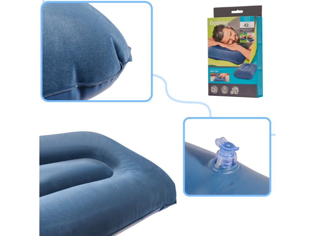 BESTWAY 67121 UTAZÓ FELFÚJHATÓ PÁRNA VELÚR TENGERÉSZKÉK