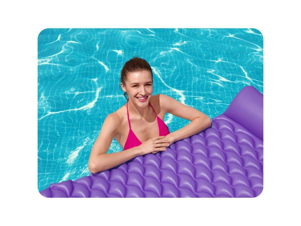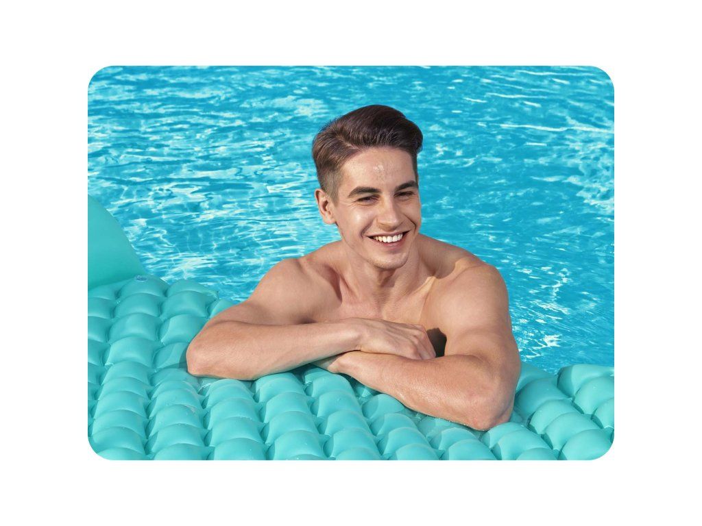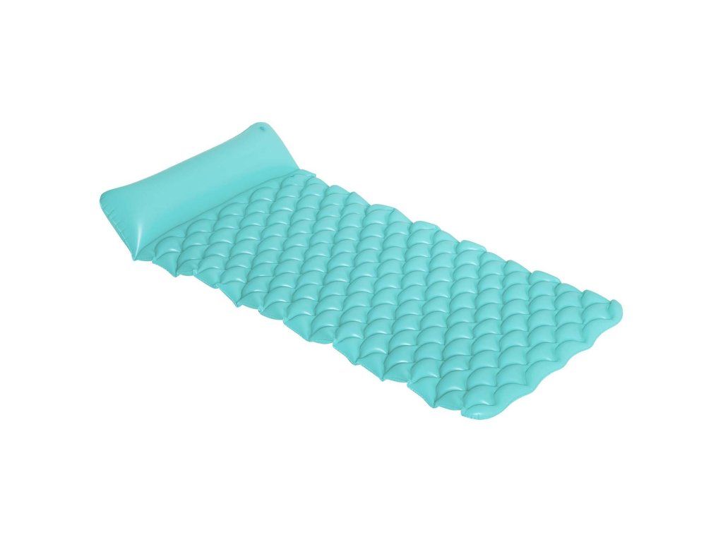 Strandmatrac ablakrésszel 213 x 86 cm / türkiz Bestway 44020-05 A matrac kiválóan alkalmas a vízparti nyaralás közbeni pihenéshez elég kitekerni a hengerből, és máris élvezheti a kellemes lebegést a víz felszínén. Az úszás remek ötlet a vakáció alatti kikapcsolódáshoz. A matracot kerti medencébe is magával viheti. A kényelmes, felfújható fejtámla növeli a fekvés komfortját. Fő jellemzők: élénk színvilág könnyű feltekerés hengerbe felfújható fejtámla javítófolt a csomagban Műszaki adatok: Méretek: 213 x 86 cm Anyag: PVC Súly: 1 kg Maximális terhelés: 90 kgKiegészítő paraméterek