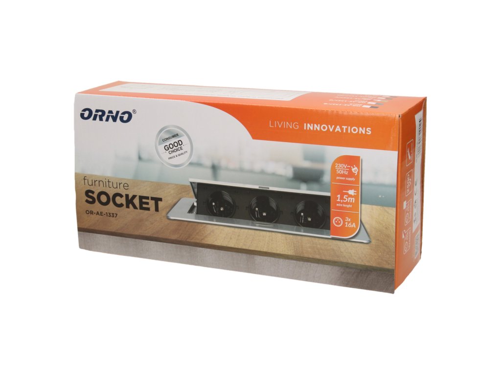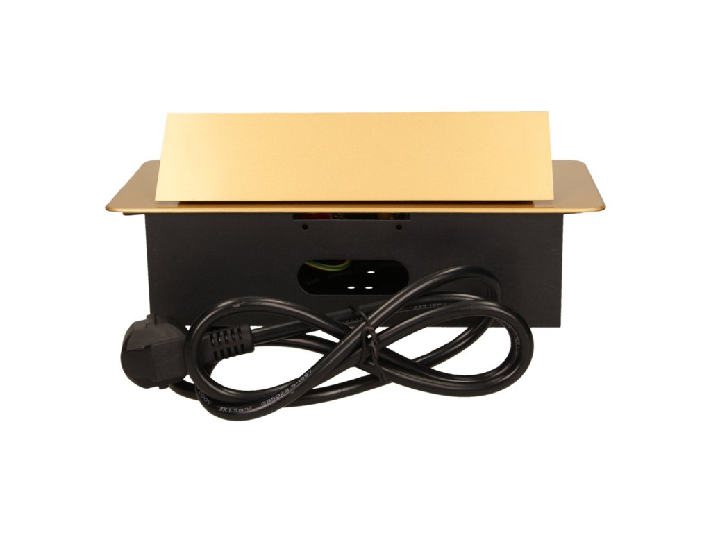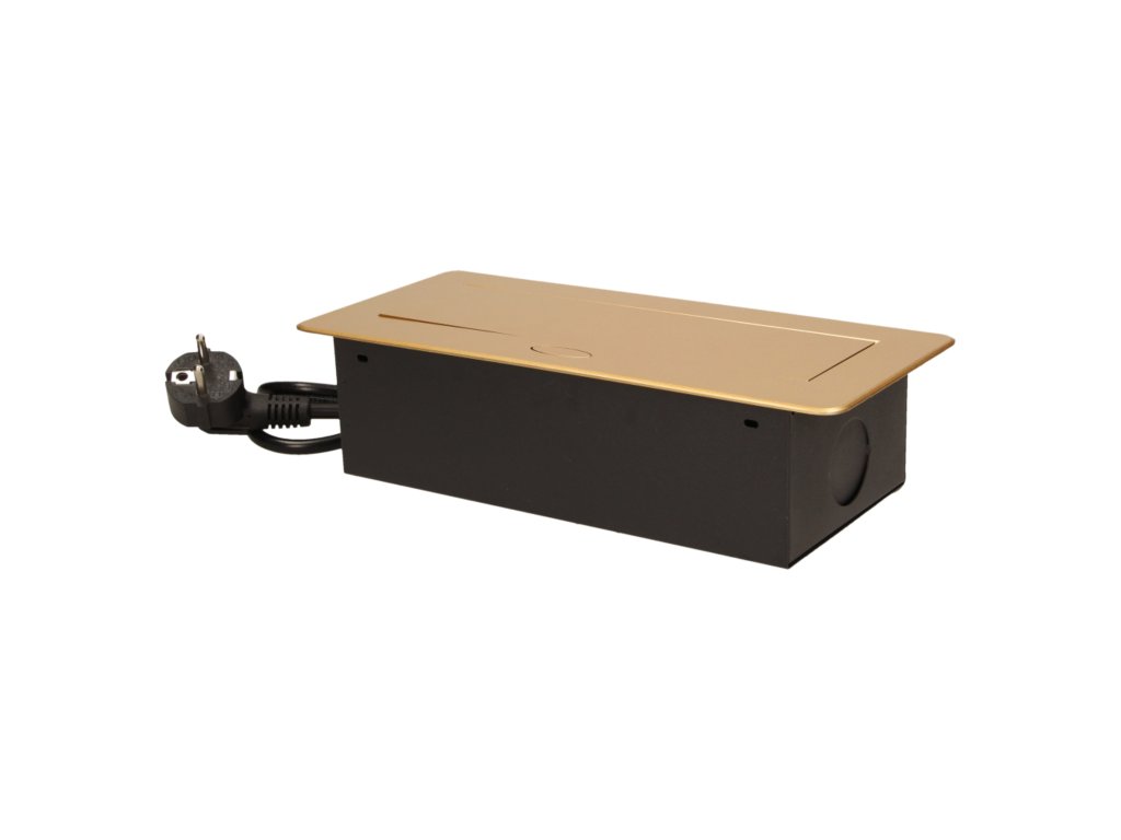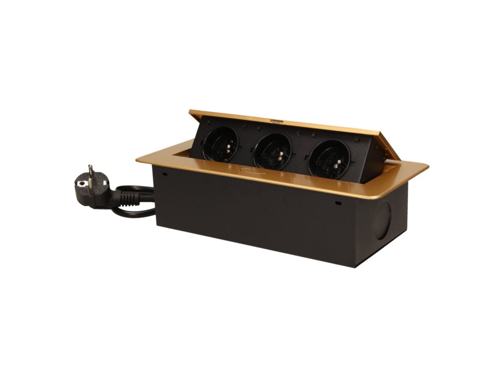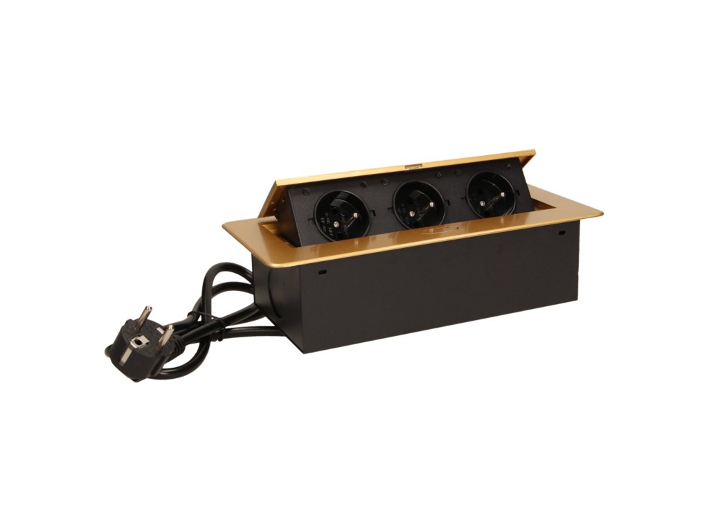 Három darab 2P+Z elektromos aljzatból álló készlet kihúzható felső fedélben. Asztalokba, asztallapokba és íróasztalokba történő belső beépítésre tervezve, függőleges és vízszintes helyzetben egyaránt, hozzáférést biztosítva az elektromos aljzatokhoz.Általános információk: