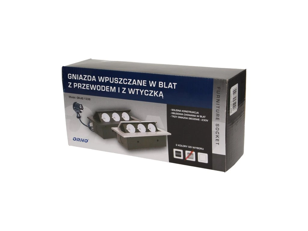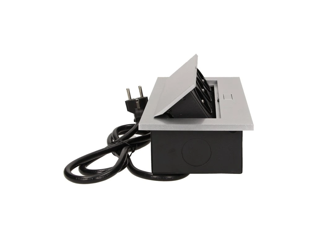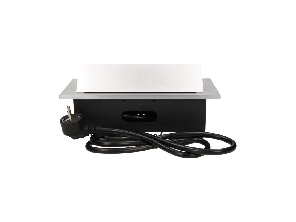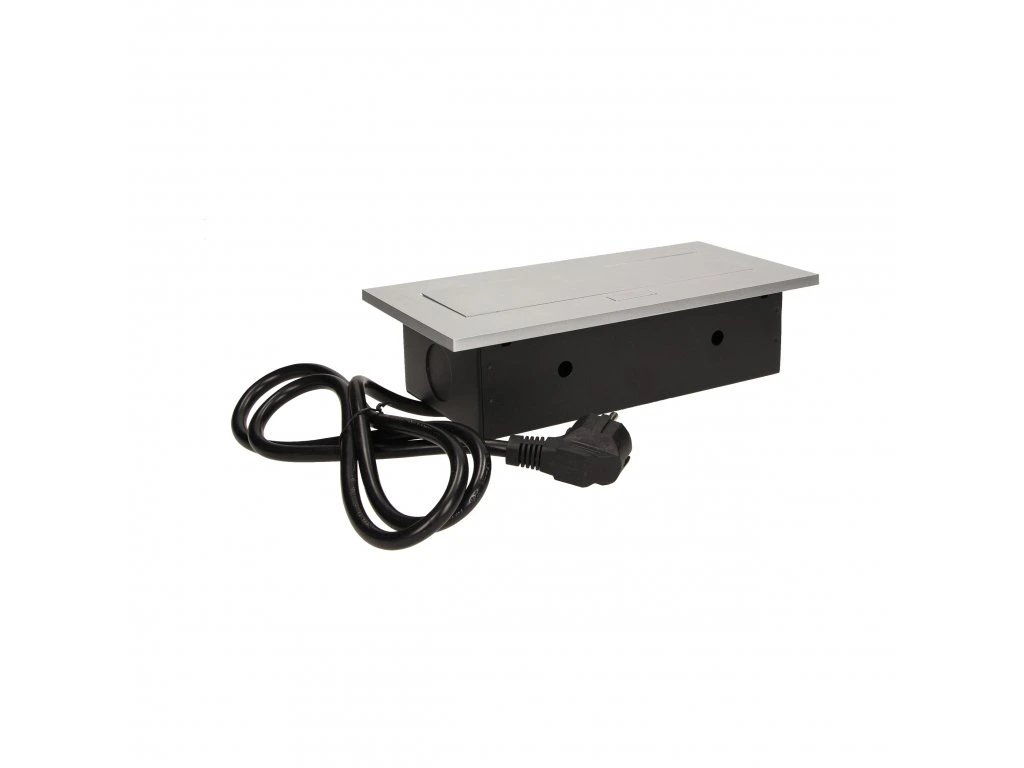Három darab 2P+Z elektromos aljzatból álló készlet kihúzható felső fedélben. Asztalokba, asztallapokba és íróasztalokba történő belső beépítésre tervezve, függőleges és vízszintes helyzetben egyaránt, hozzáférést biztosítva az elektromos aljzatokhoz.Általános információk: