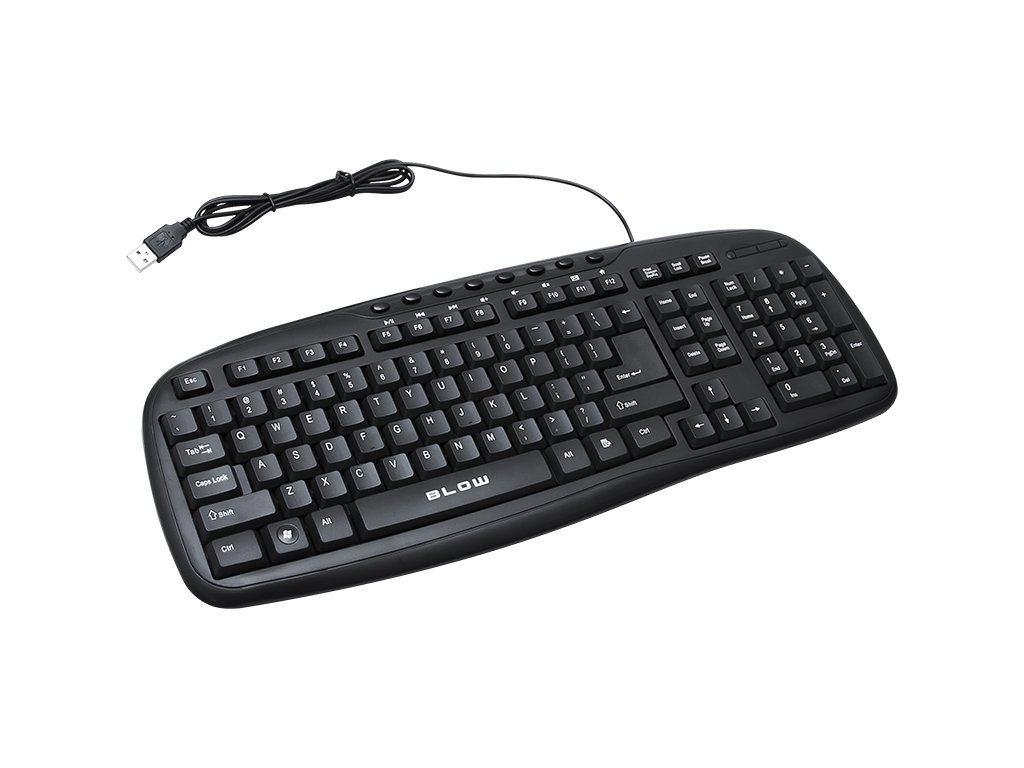 A Blow USB-s vezetékes billentyűzetek kiváló minőségű anyagokból készülnek, fokozott nedvességállósággal. A legnépszerűbb QWERTY billentyűkiosztás és a külön numerikus billentyűzet segítségével szabadon gépelhet. A további multimédiás gombok lehetővé teszik pl. a zene, a hangerőszabályozás kényelmes és praktikus vezérlését. Az alkalmazott összecsukható lábak lehetővé teszik, hogy a billentyűzet szögét a felhasználó igényei szerint állítsa be.Műszaki adatok: