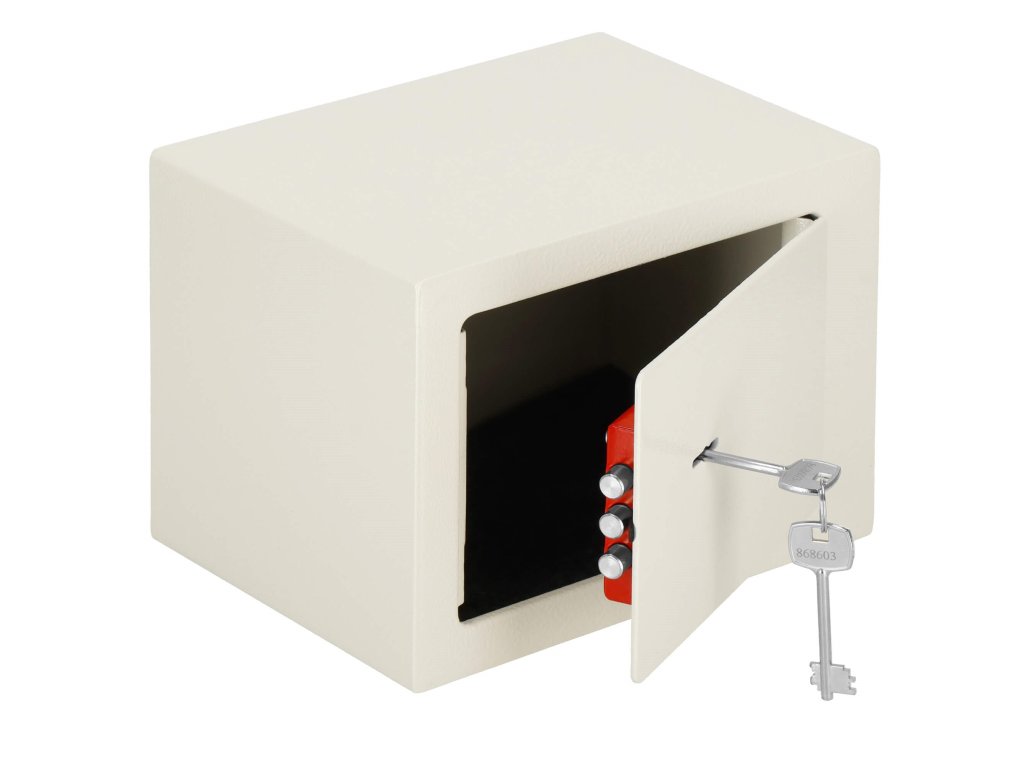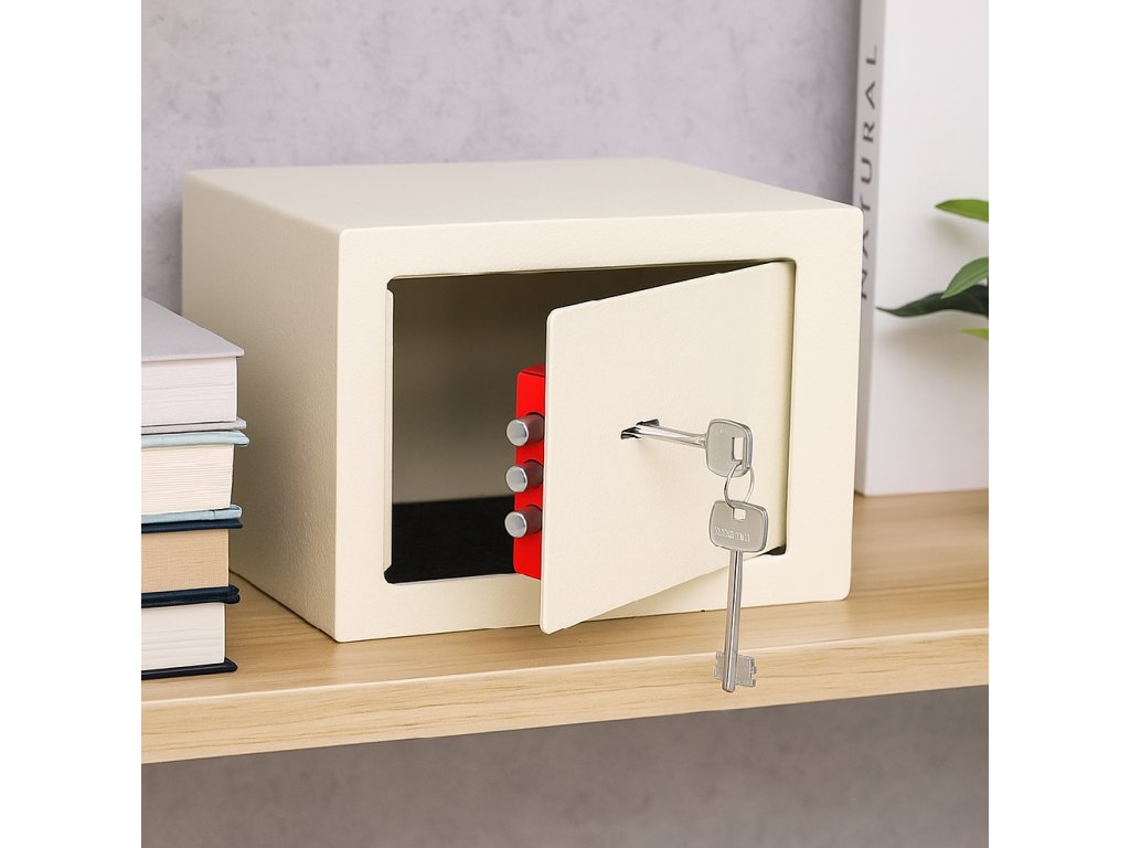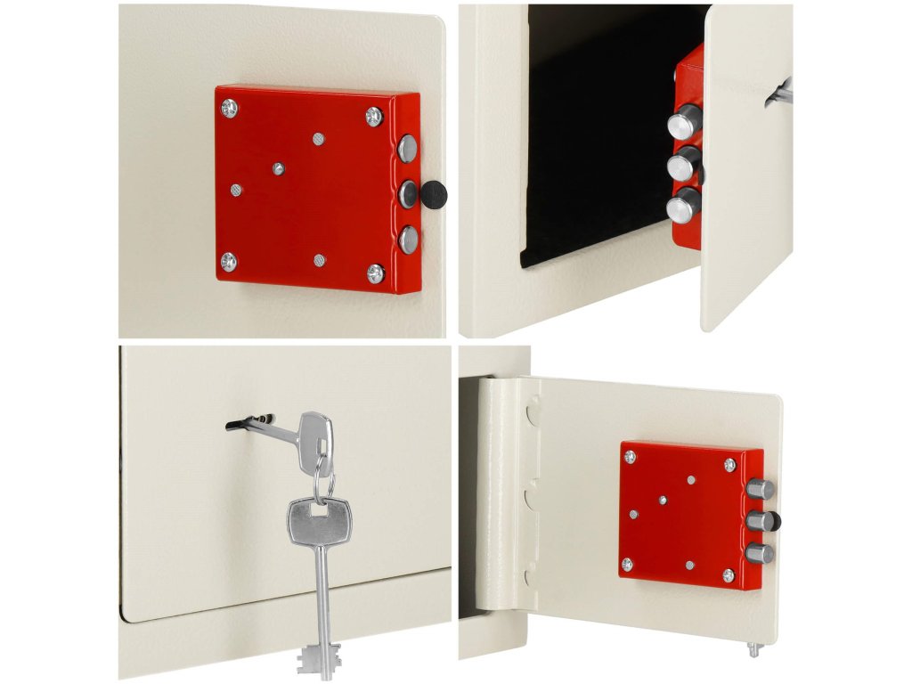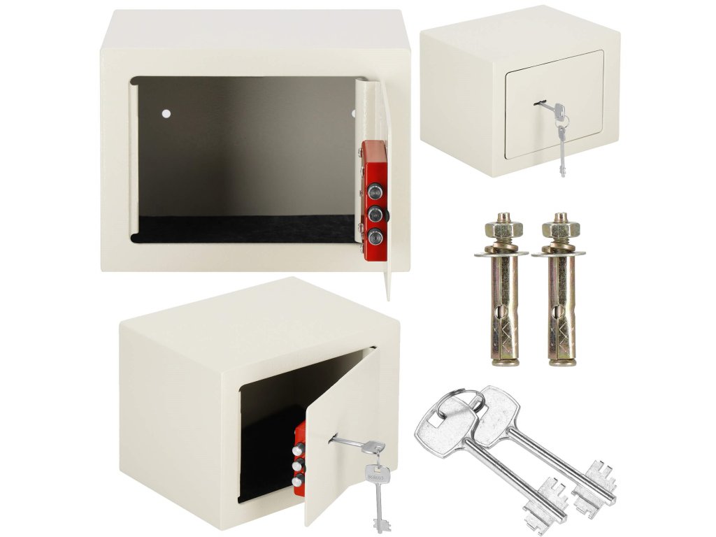 Továbbá: falra és padlóra szerelhető (dübelek mellékelve), filcbetét a széf belsejének árnyékolására