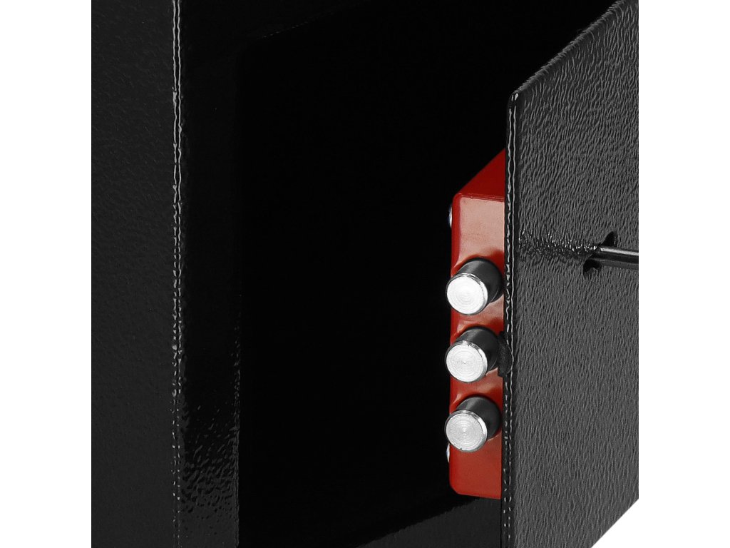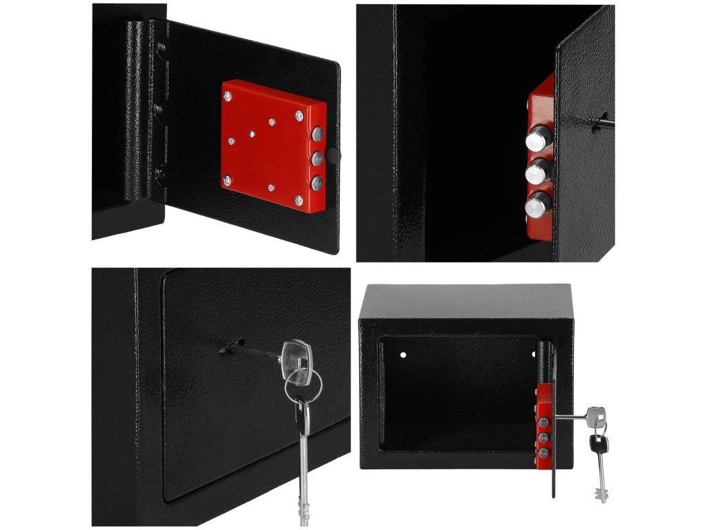 Továbbá: falra és padlóra szerelhető (dübelek mellékelve), filcbetét a széf belsejének árnyékolására