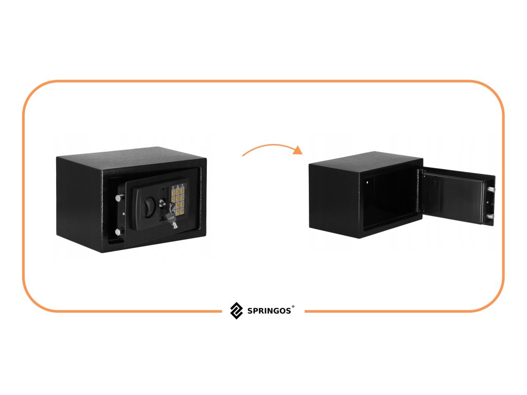 - Továbbá: falra, padlóra és szekrényre történő rögzítési lehetőség (dübelek mellékelve), filcbetét a széf belsejének árnyékolására