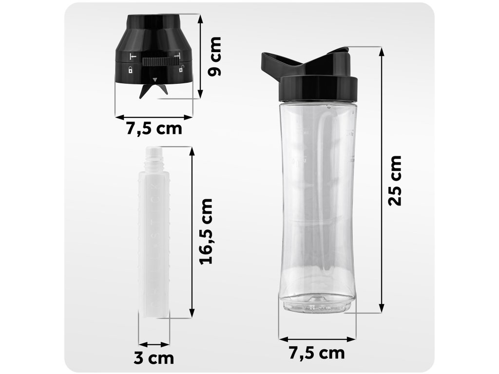 600 ml-es kapacitású palack adapteres rögzítési rendszerrel ellátott turmixgéphez készült (a készletben).
