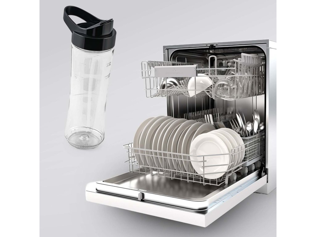 A palackot biztonságosan lehet mosogatógépben tisztítani – mind a testet, mind a fedelet.