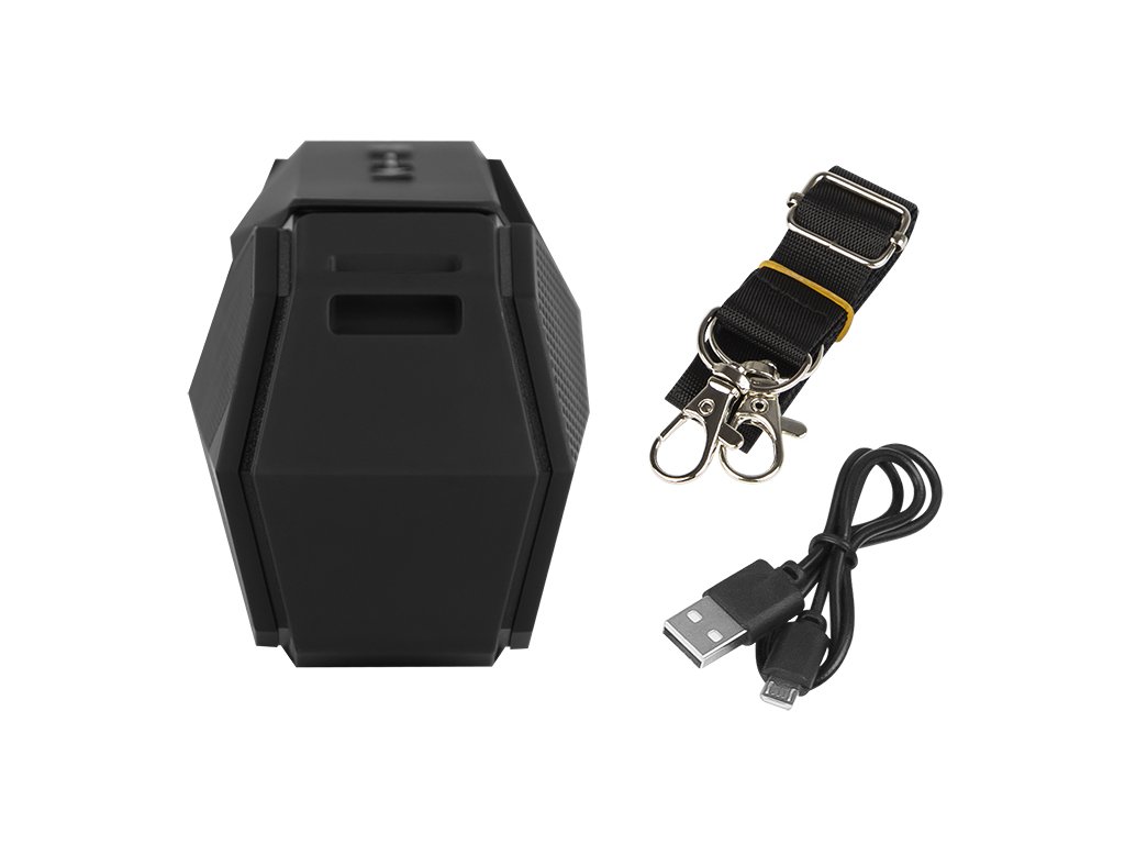 A hangszóró teljes mértékben kompatibilis minden olyan eszközzel, amely bluetooth technológiával rendelkezik. De ez még nem minden - a további aljzatoknak (USB, microSD) köszönhetően más forrásból, például USB stickről vagy microSD kártyáról is lejátszhat zenét! A hangszóró emellett beépített FM-rádióval is rendelkezik, automatikus állomáskereséssel. A mellékelt funkcionális pántnak köszönhetően a hangszóró könnyedén hordozható mindenféle házon kívüli találkozóra.