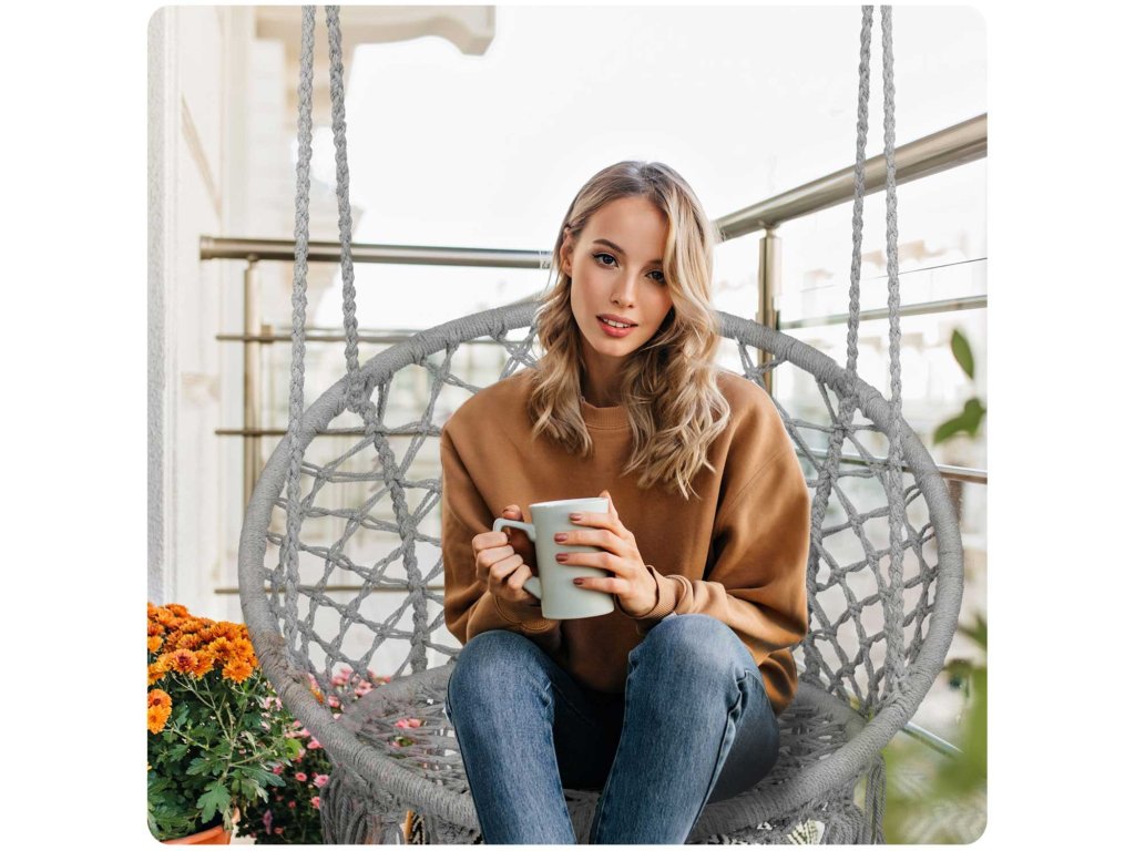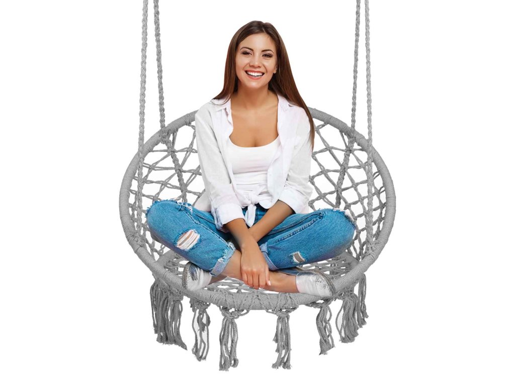 Kényelmes lógó karosszék modern és divatos boho stílusban.