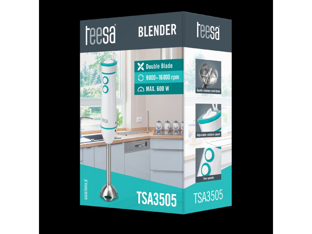 A könnyen használható TSA3505 botmixer dupla pengével, amely függőlegesen és vízszintesen is aprít, maximális hatékonyságot biztosít a gyümölcskoktélok, gyümölcslevek vagy levesek készítésekor. A készülék feje kiváló minőségű rozsdamentes acélból készült, így magas hőmérsékleten is képes az ételek darálására. A turmixgép kulcsfontosságú funkciókkal rendelkezik, amelyek lehetővé teszik, hogy gyorsan és egyszerűen az Ön igényeihez igazítsa a készülék működését, beleértve a sebességszabályozást és a turbó üzemmódot, amely megduplázza a sebességet. A TSA3505 ideális azok számára, akiknek kicsi a konyhájuk - a készülék kevés helyet foglal a pulton, és a mellékelt fogantyúnak köszönhetően a falra is felakasztható. Fehér színével és türkizkék díszítésével a turmixgép illeszkedik a modern konyhák dizájnjába.