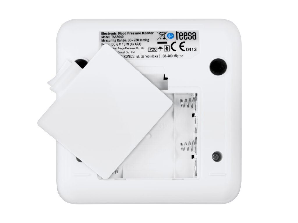 A Teesa BPM90 vállnyomásmérő nélkülözhetetlen része otthonának. Egyszerű működésének és a mandzsetta segítségével végzett oszcillometrikus nyomásmérési módszernek köszönhetően a készülék lehetővé teszi, hogy gyorsan és önállóan ellenőrizze a vérnyomását. Fontos, hogy funkcióinak köszönhetően a készülék tájékoztatja Önt a szívritmuszavarral kapcsolatos rendellenességekről.