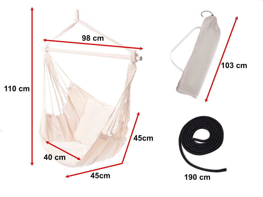 A keresztrúdnak és az erős, szorosan szőtt köteleknek köszönhetően a függőágy stabil és biztonságos lesz használat közben.
