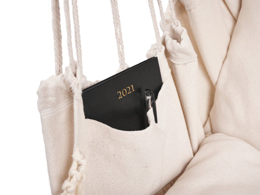 Brazíliai hintaszék párnákkal, ekrü bojtokkal