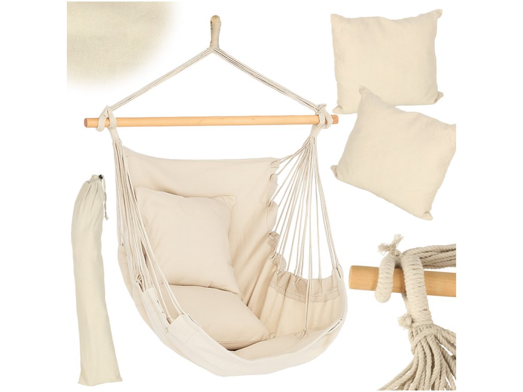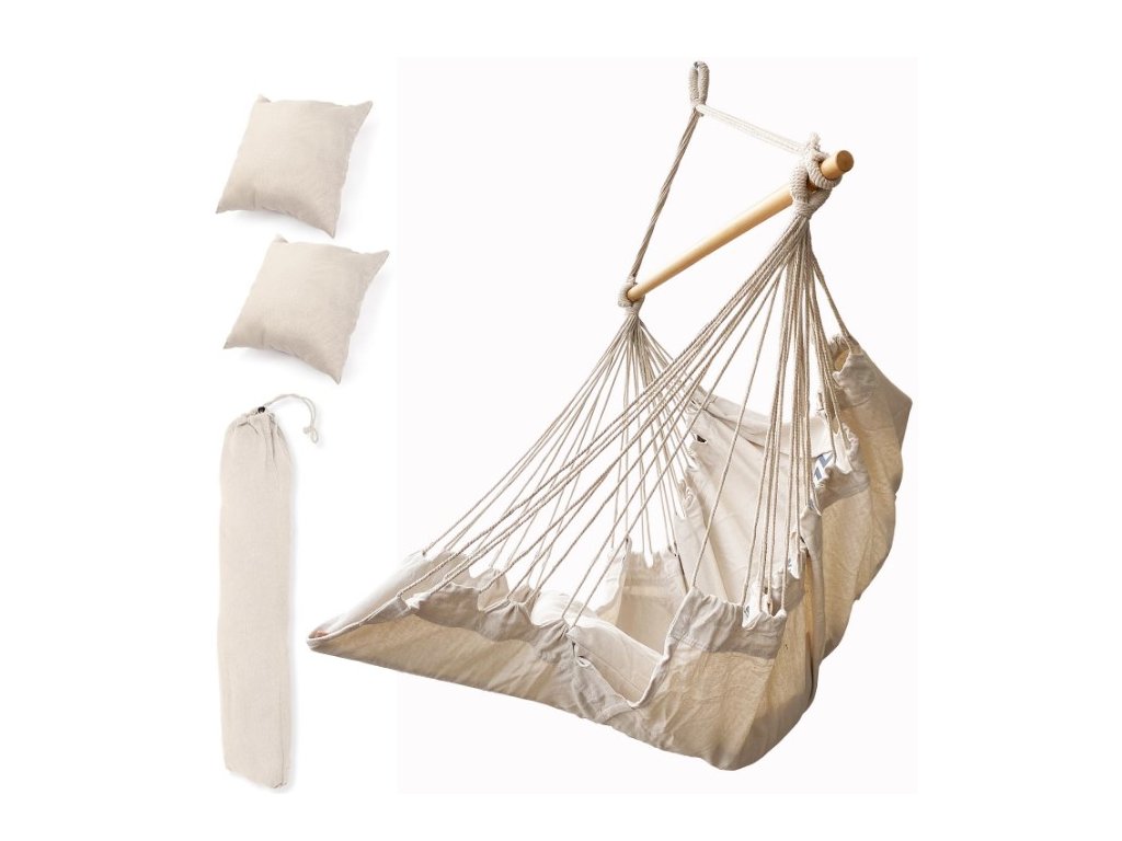 Brazíliai szék lábtartóval Függő nyugágy hinta 130cm bézs