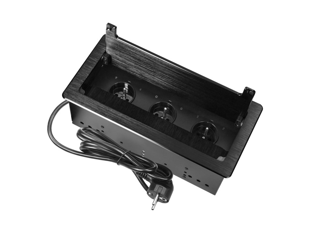 Bútorba építhető aljzat, fekete, 3x2P+E, 1,5 m kábel