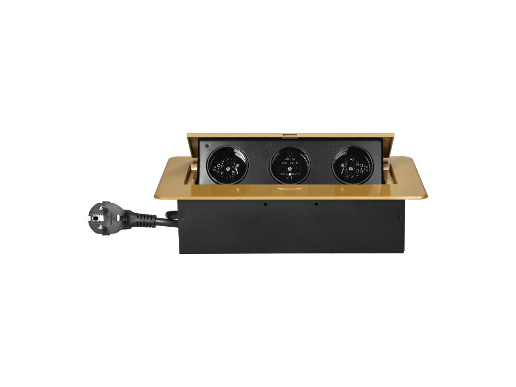 Bútorba szerelhető aljzat 3x2P+E, arany, 1,5 m kábel
