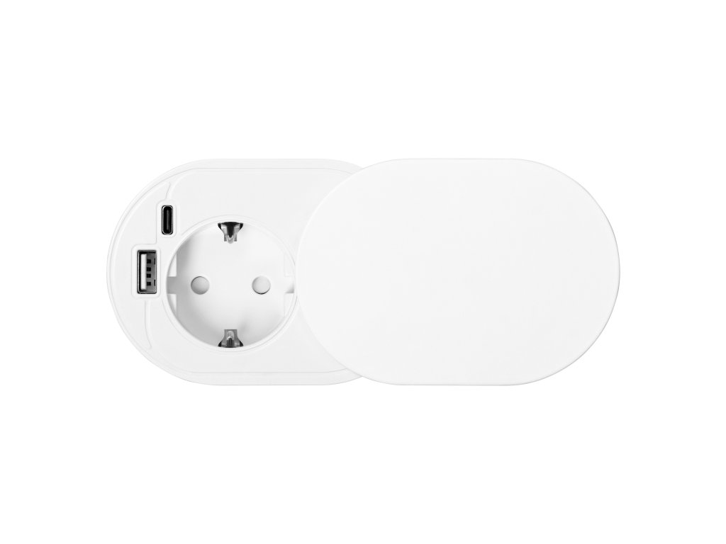 A süllyesztett ?6 cm-es bútoraljzat csúszó fedéllel nemcsak praktikus megoldás az eszközök csatlakoztatására, hanem elegáns kiegészítője is minden modern belső térnek. Tökéletesen működik otthon és az irodában egyaránt.Egy Schuko-típusú aljzat (1x2P+E) legfeljebb 3680W terheléssel és két beépített USB porttal (A+C típus; 17W) három eszköz egyidejű csatlakoztatását teszi lehetővé. Az USB töltő kimenete 5V/3,4A.