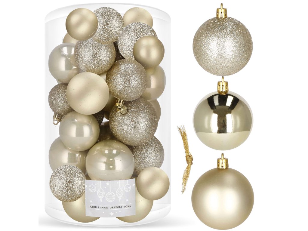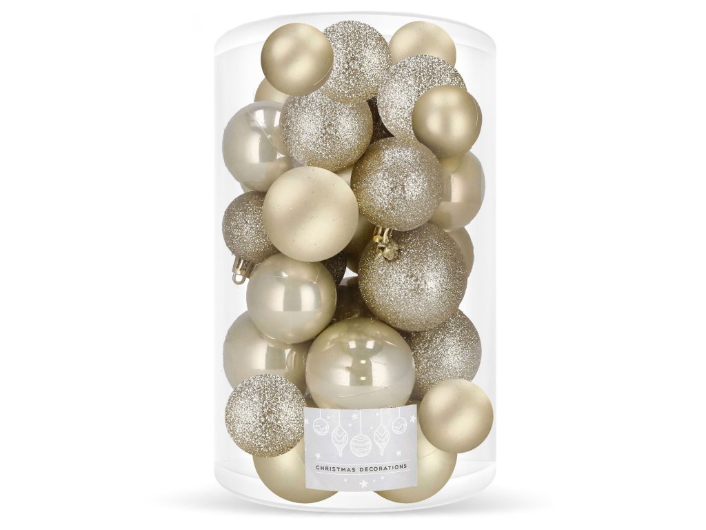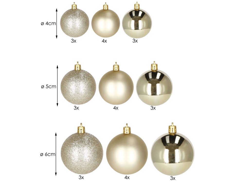 - Mennyiség: 30 db karácsonyi gömb (+/- 1 gömb)