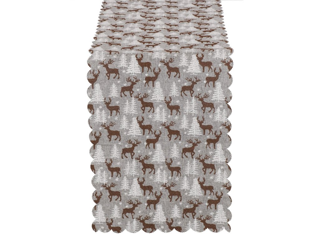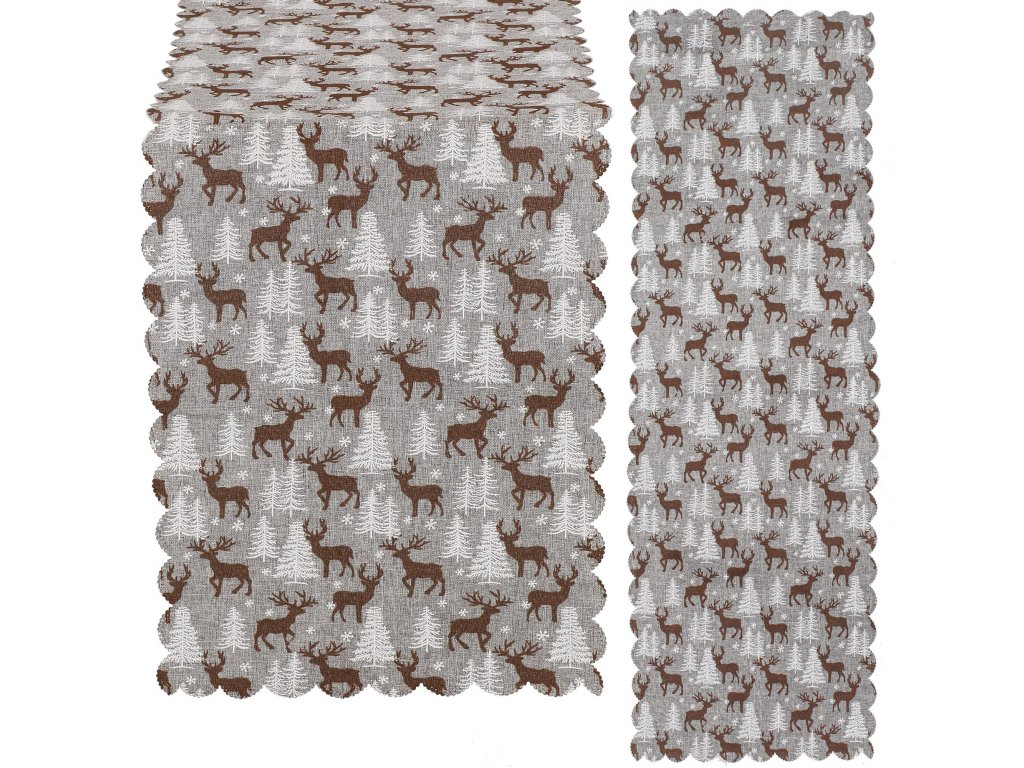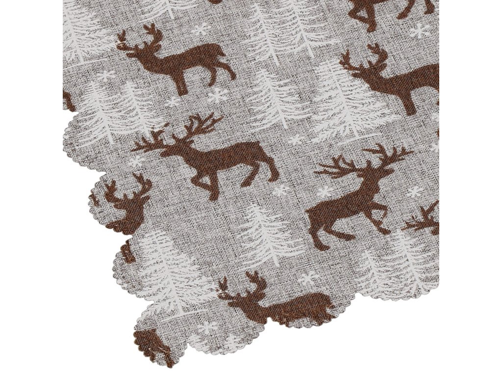 - Minta: szürke, fehér fákkal és hópelyhekkel, barna szarvasokkal