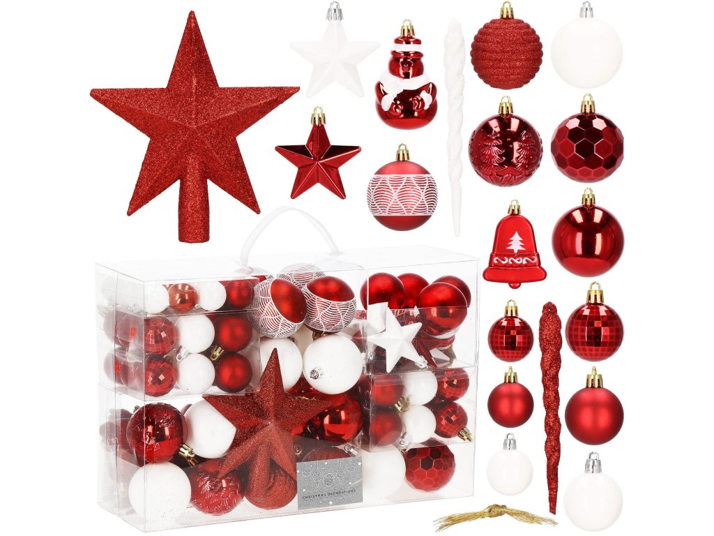 - Mennyiség: 104 db gömb + 1 csillag a karácsonyfa tetejére
