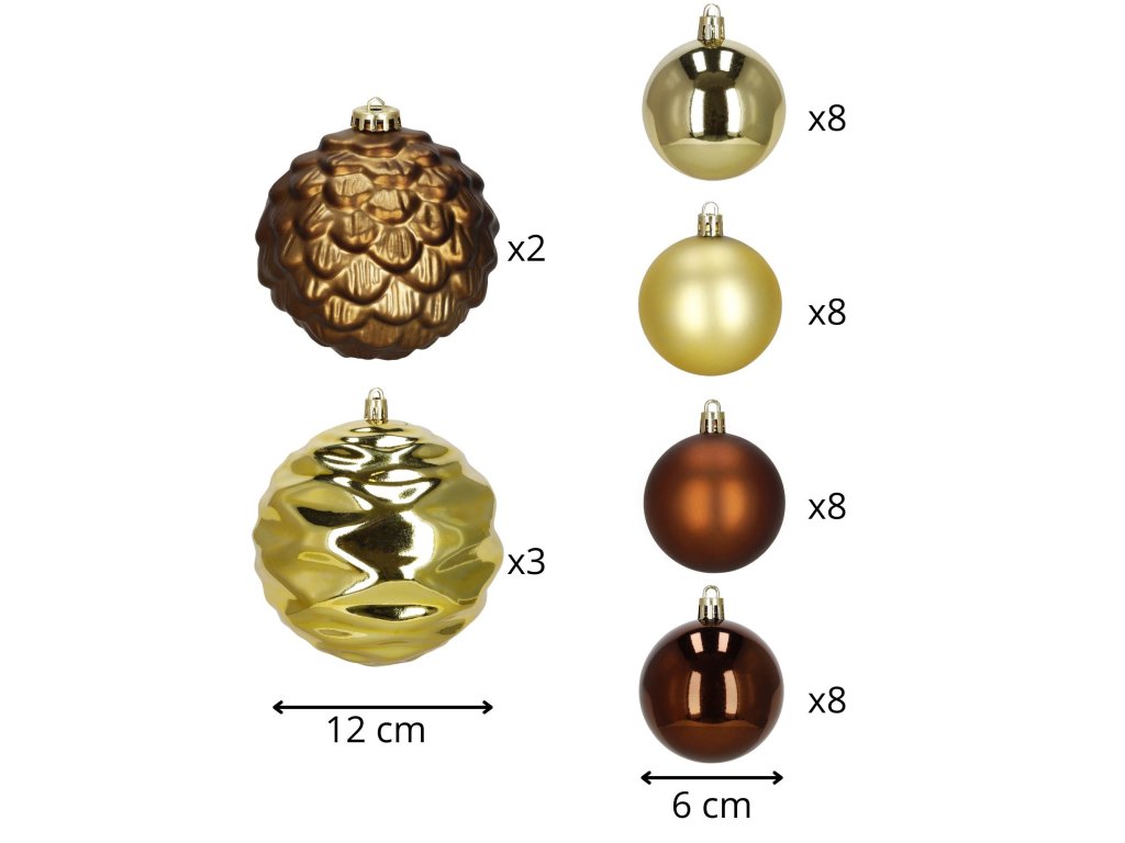 A készlet tartalmazza a következő gömbdíszeket: