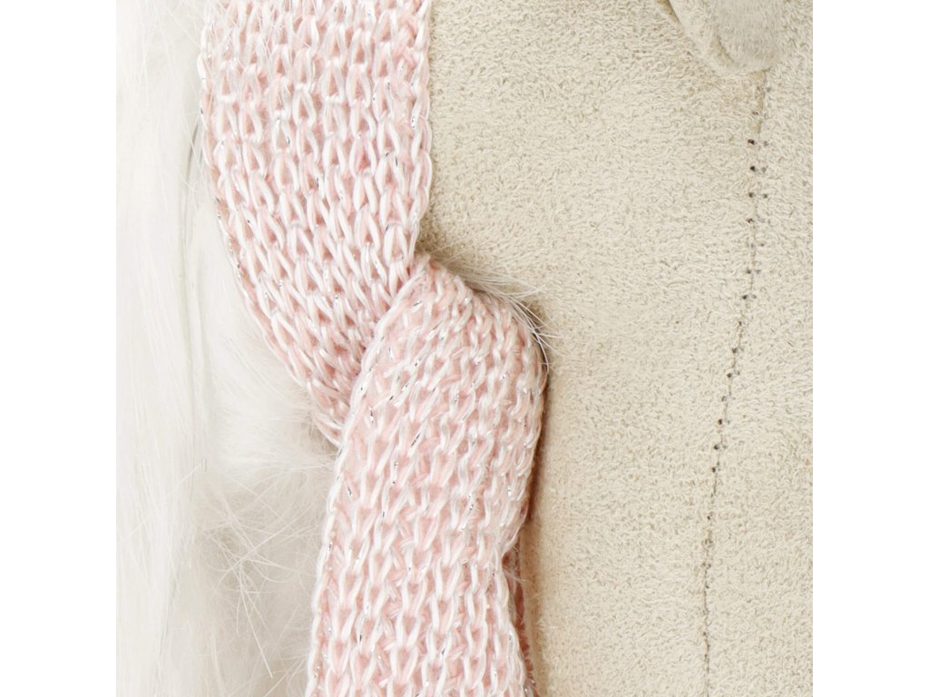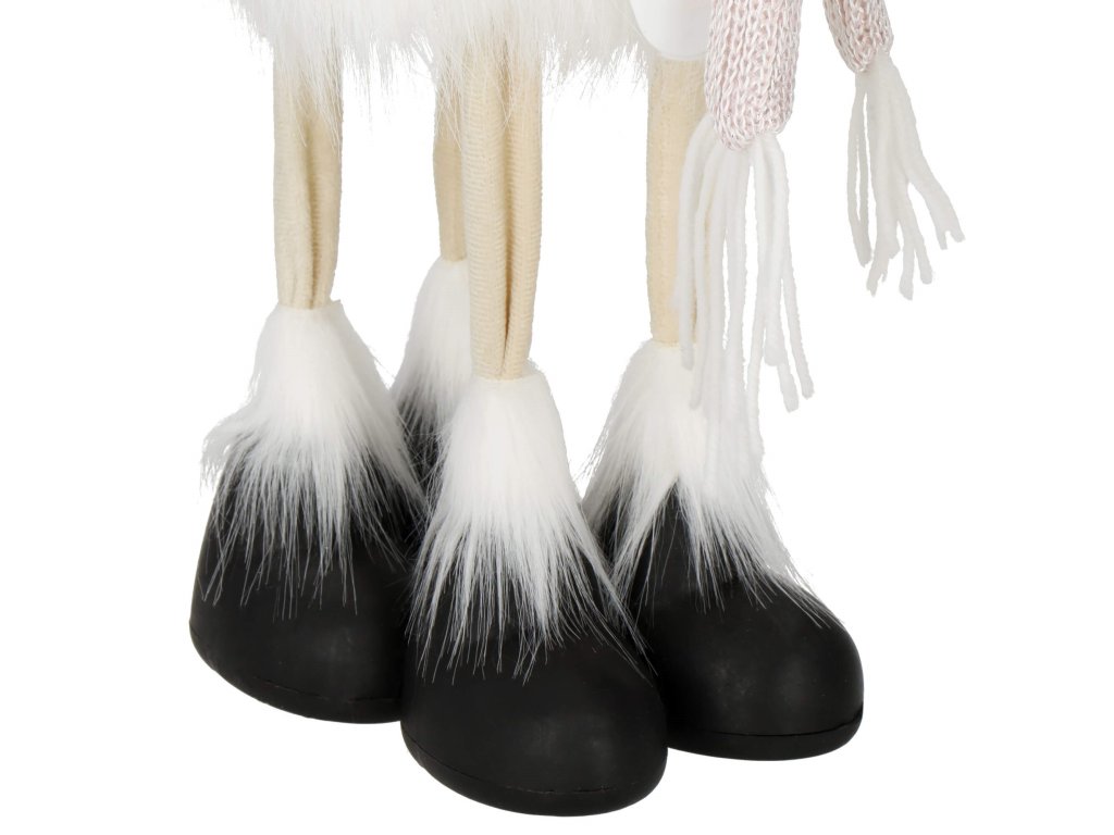 Kialakítási elemek: arc szemekkel, fülekkel és orral, szarvak, szőrme test, vékony lábak, fekete, masszív cipők, rózsaszín sál