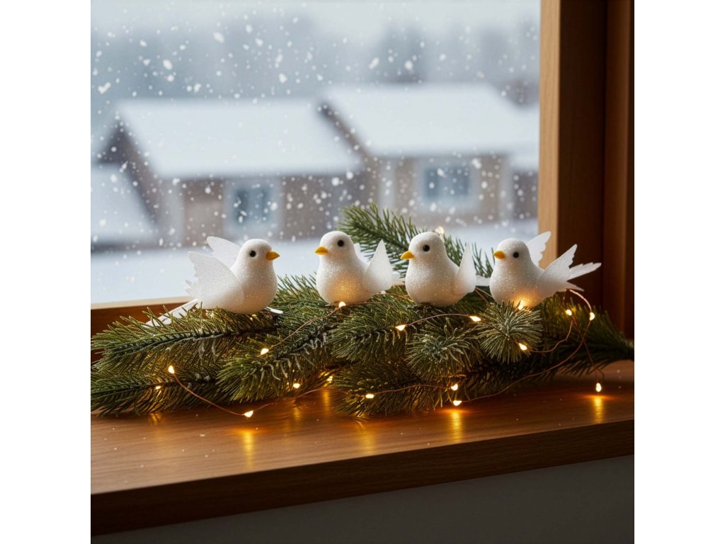 - Építőelemek: fej, test, szárnyak, és csillámmal bevont tollak, csillogó csőrök, mint a kristály