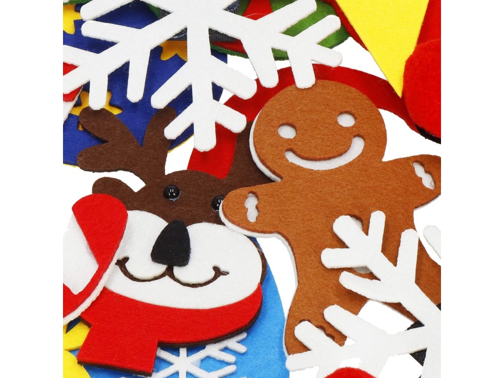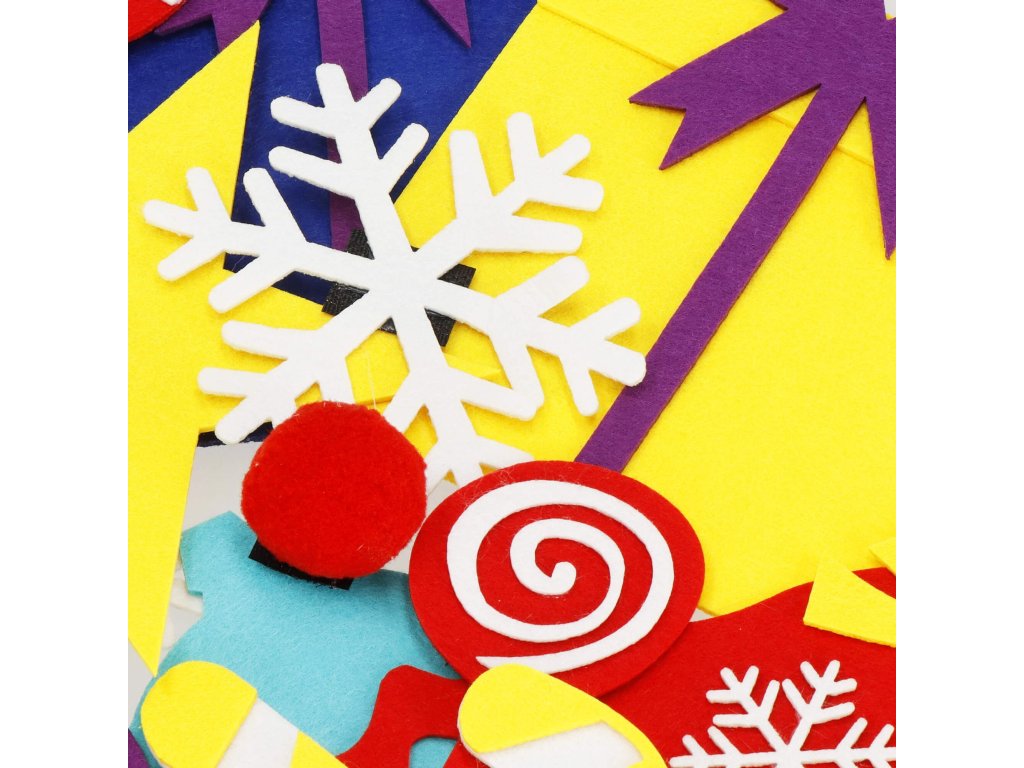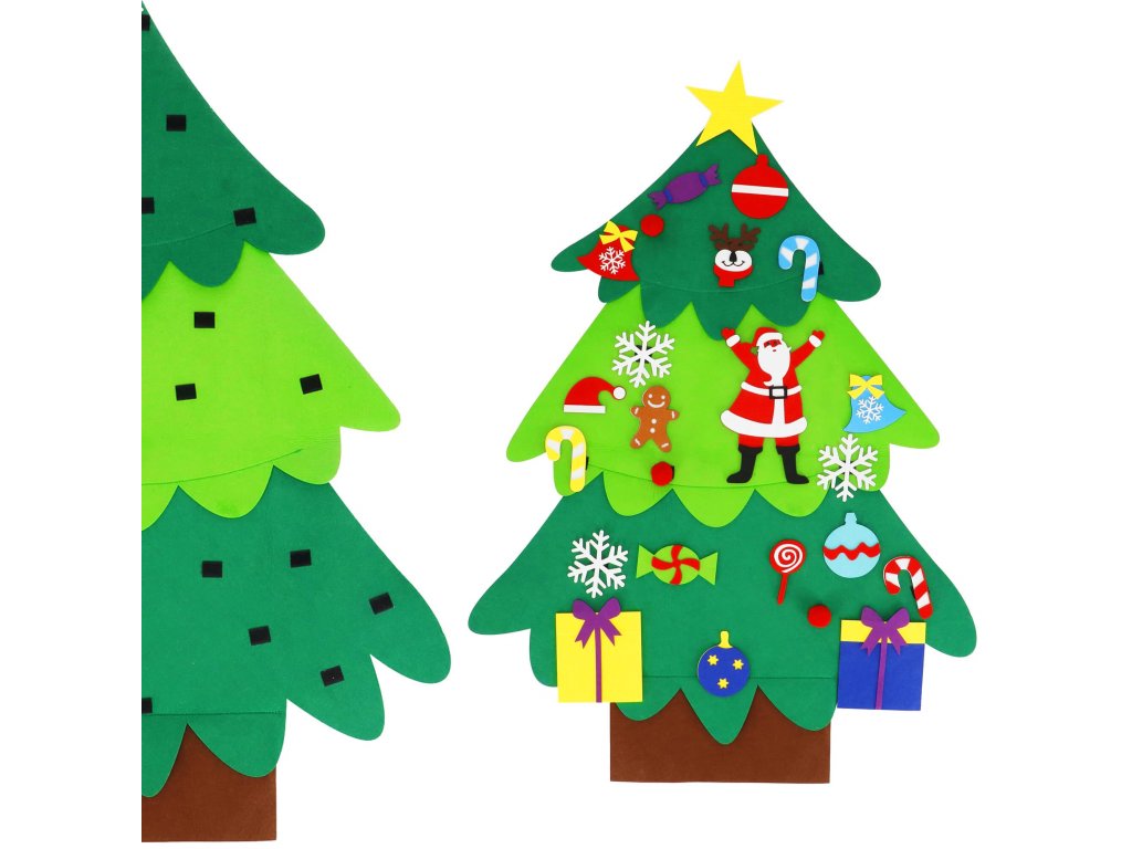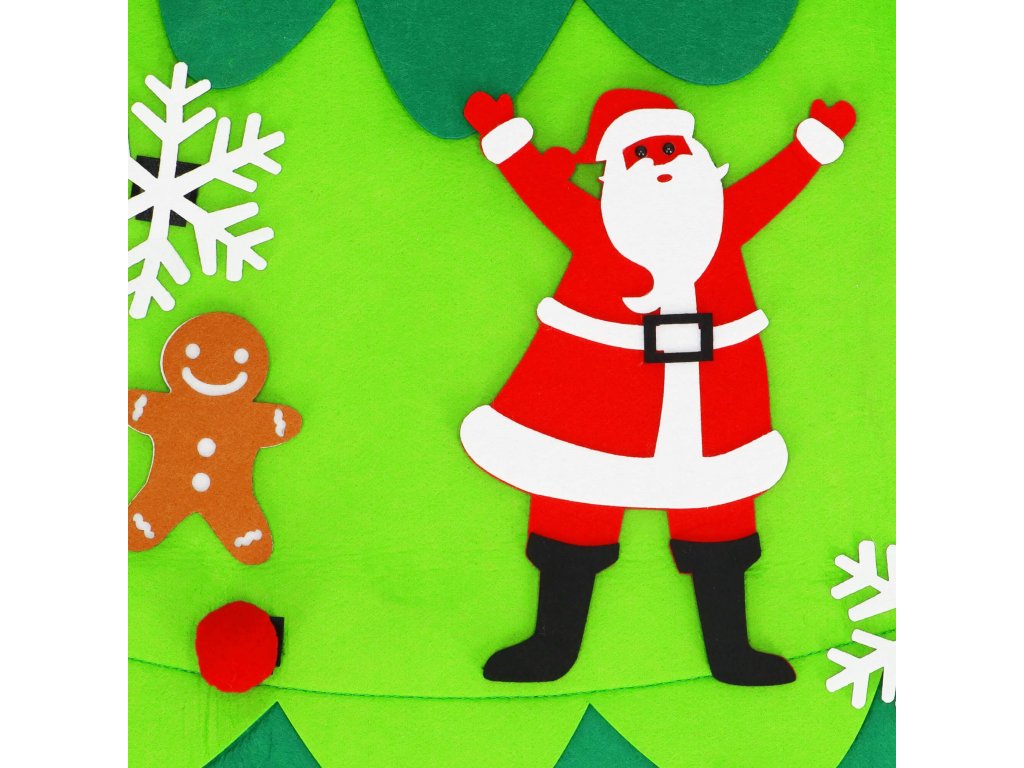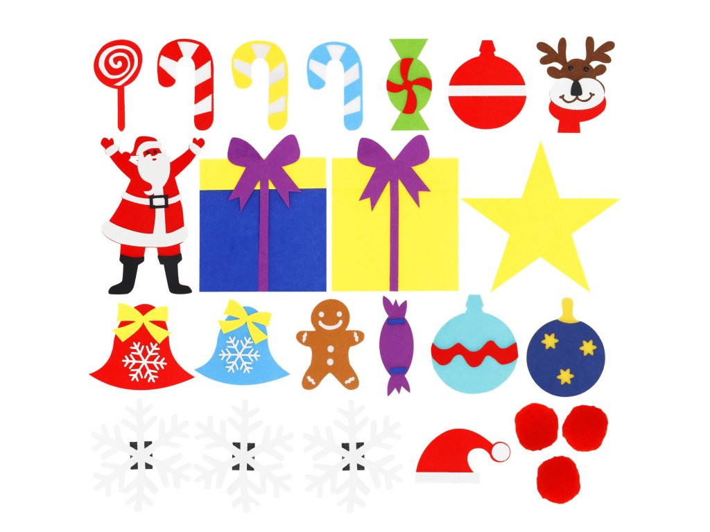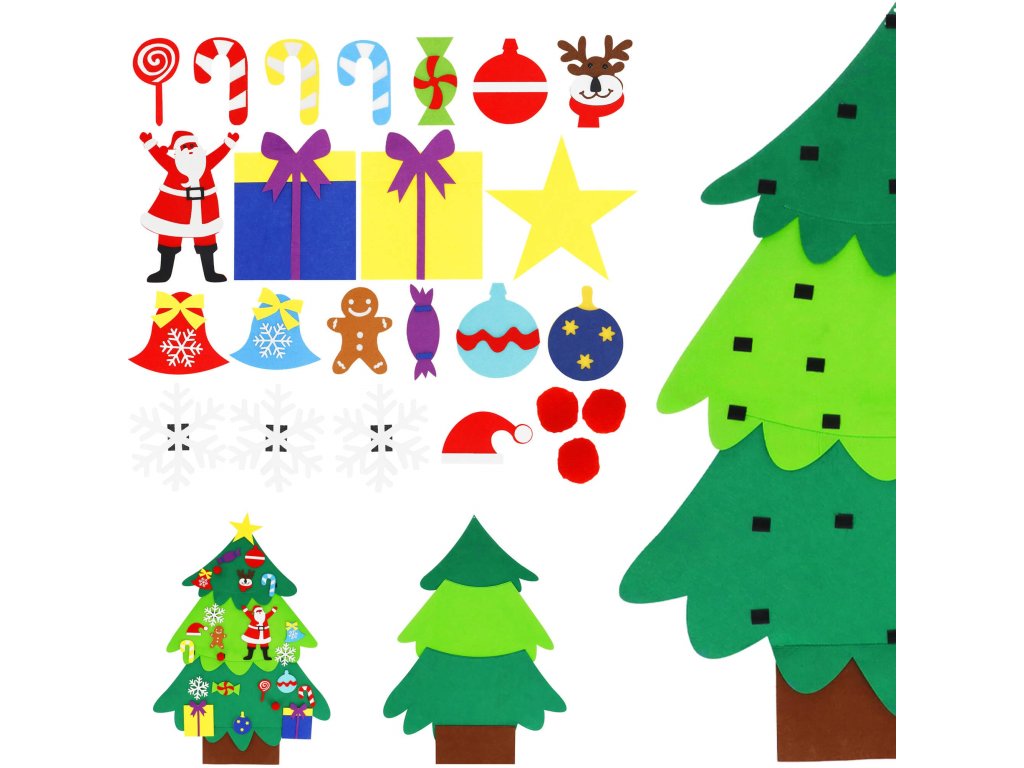 Elemei: a készlet tartalmaz egy filc fát felvarrt tépőzárral, amelyre kisebb filc díszek rögzíthetők; ezek között vannak: nyalókák, ajándékok, hópelyhek, piros gömbök, csengők, Mikulás, Mikulás sapka, rénszarvas fej, golyók, cukorkák, csillag, mézeskalács figura