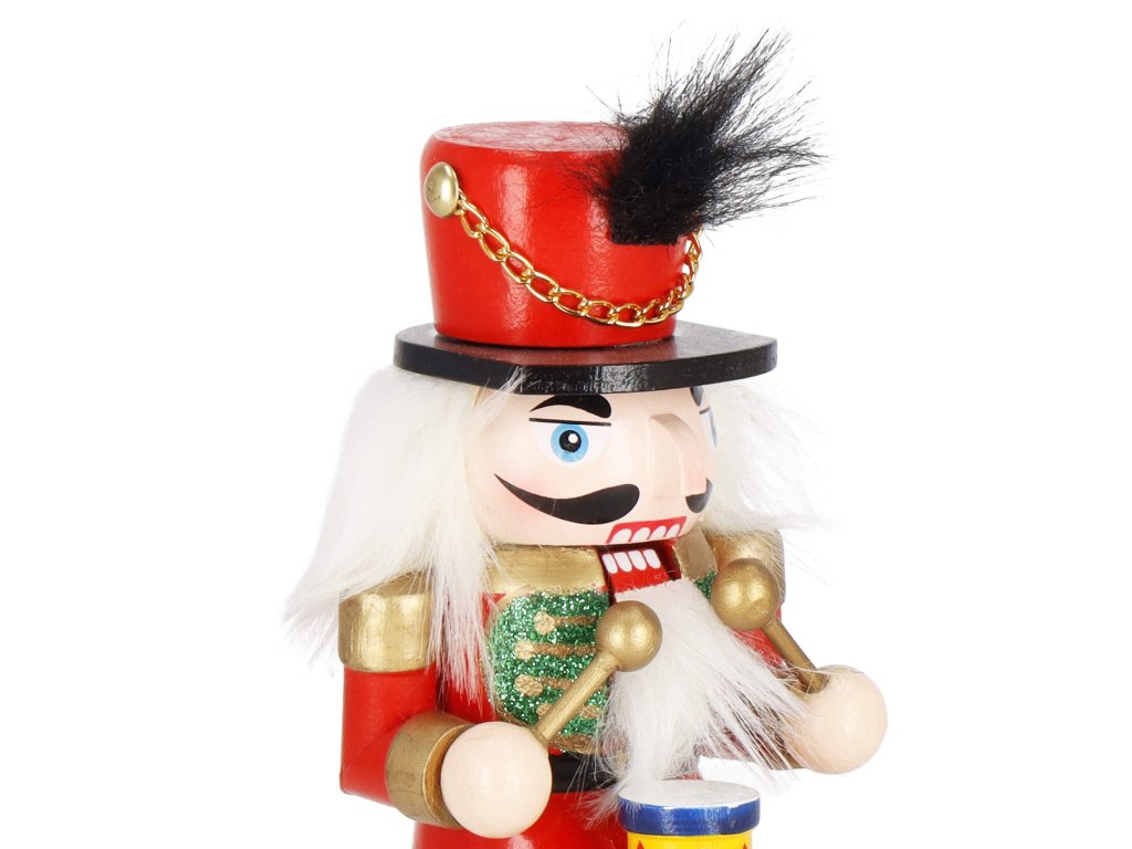 - Szerkezeti elemek: piros sapka ellenzővel, piros öltözet, fekete cipő, arc szemekkel és bajusszal, kiálló orr, ősz haj és szakáll, diótartó nyílás a szájban, amelyet a hátulról emelt kar nyit meg, dob, a kezében dobütők