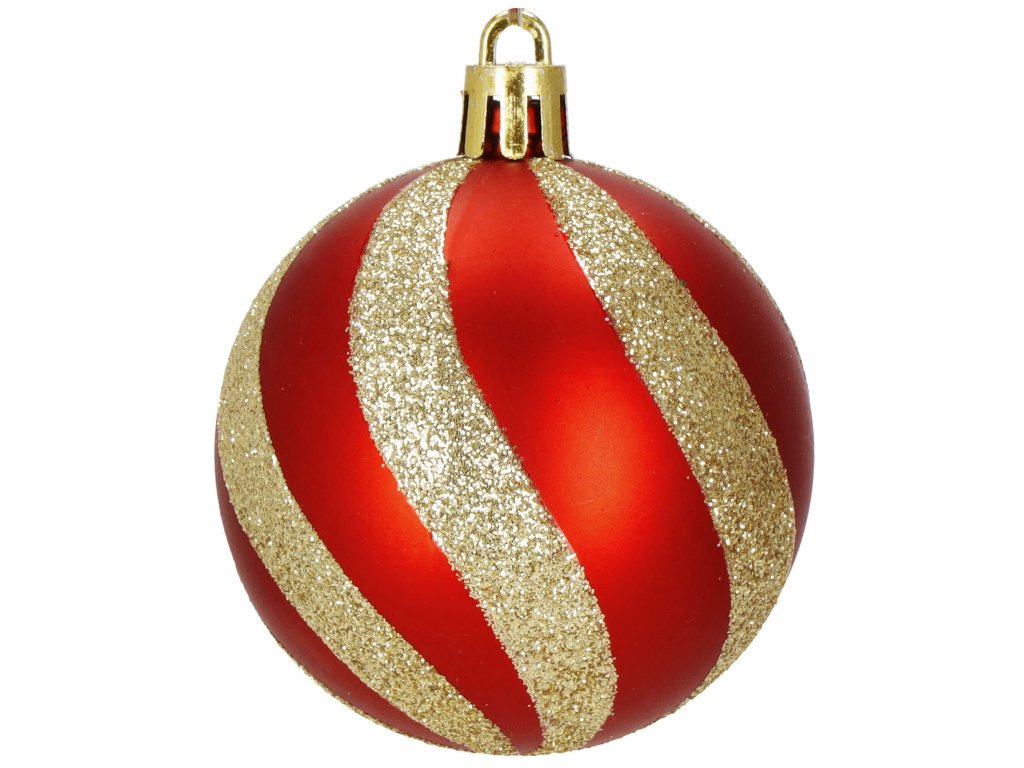 - 2x bordázott, fényes gömb - piros - csillámos csíkokkal - 6 cm