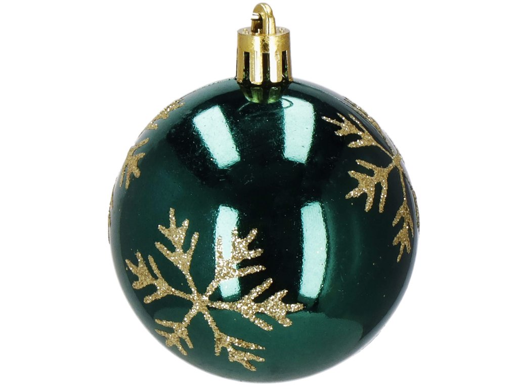 - 6x fényes gömb - smaragd + arany hópehely - 6 cm