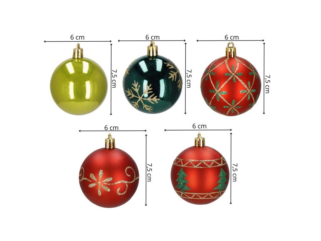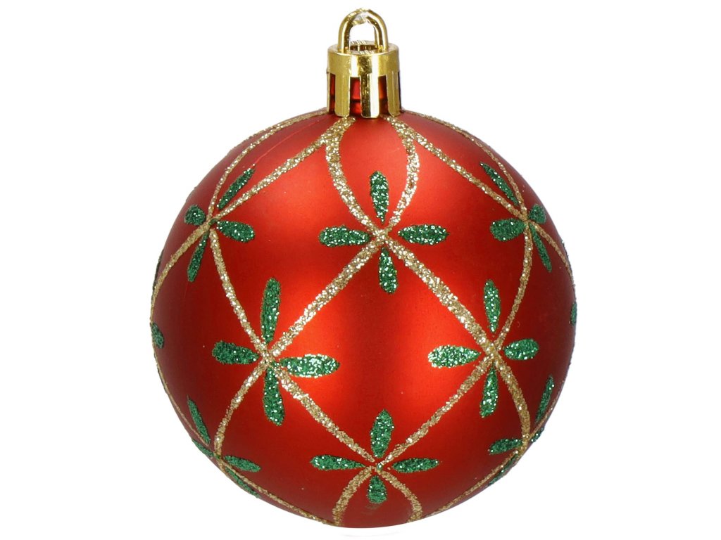 - 6x matt gömb - piros + arany és zöld csilláms díszek - 6 cm