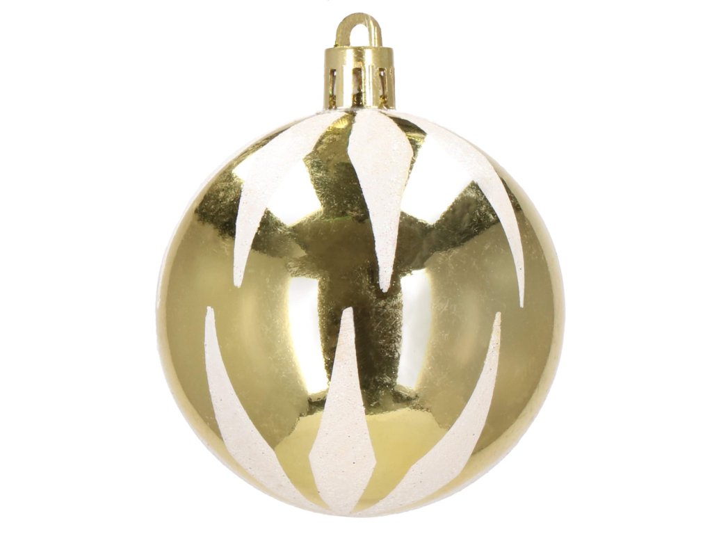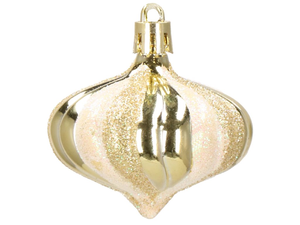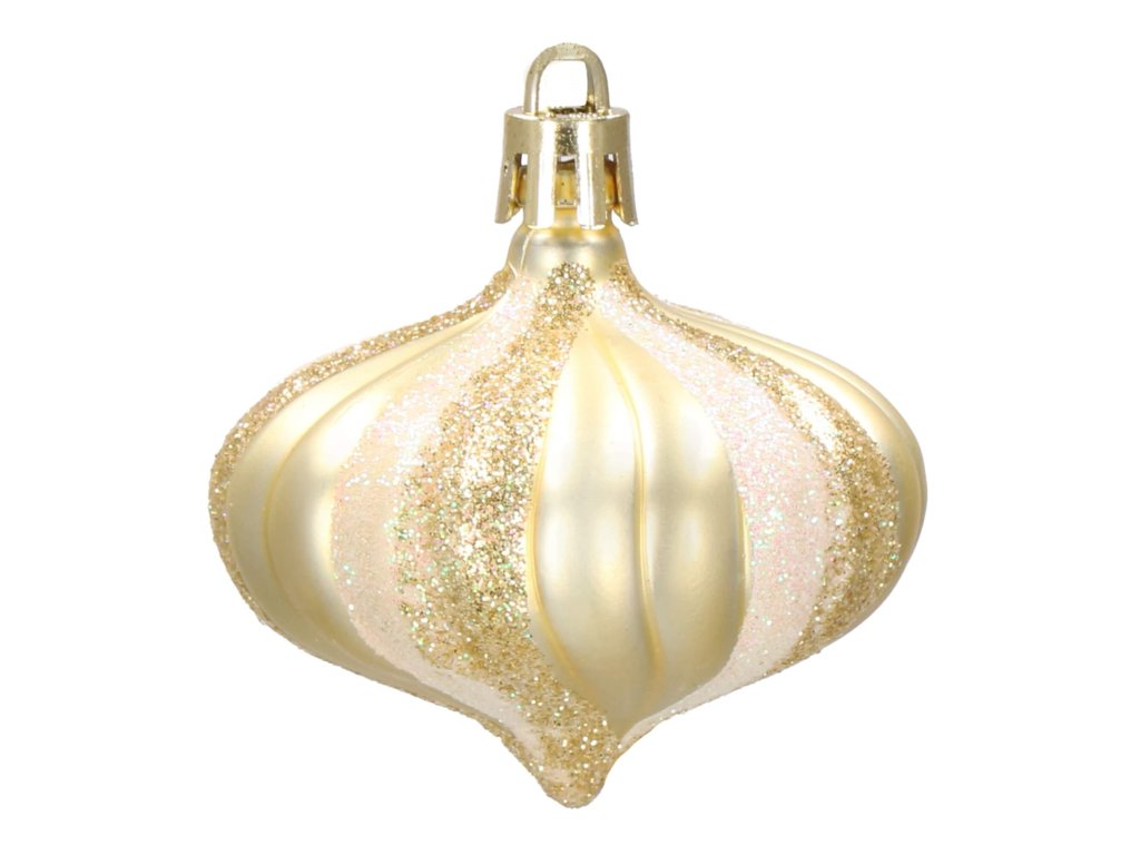 - 4x "forma" gömbdísz - arany + fehér és arany csillám: 5,7 cm ; magasság: 6 cm