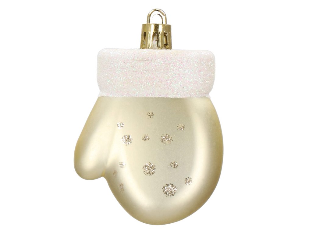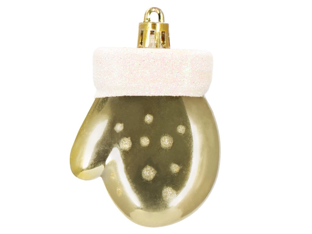 - 4x "kesztyű" gömbdísz - arany fehér csillám: 7,5 x 5 cm