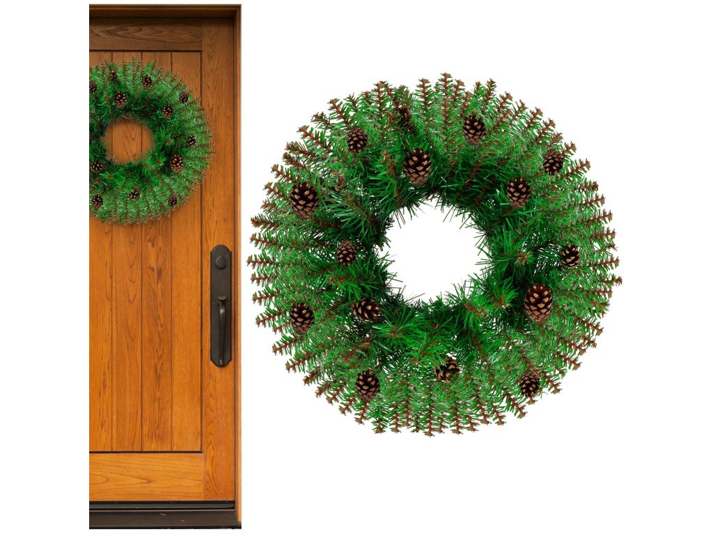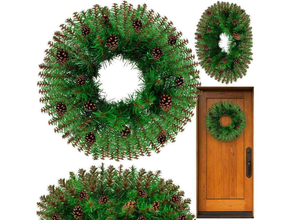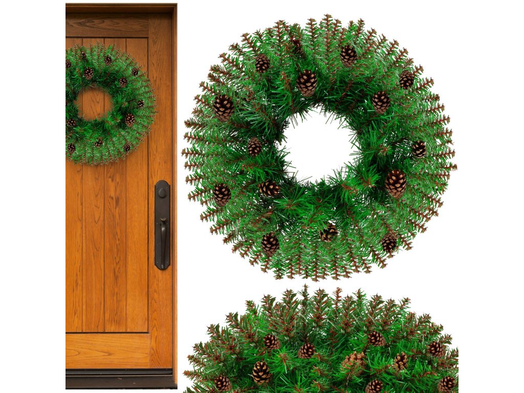 - Típus: műfenyőágakból készült koszorú tobozokkal