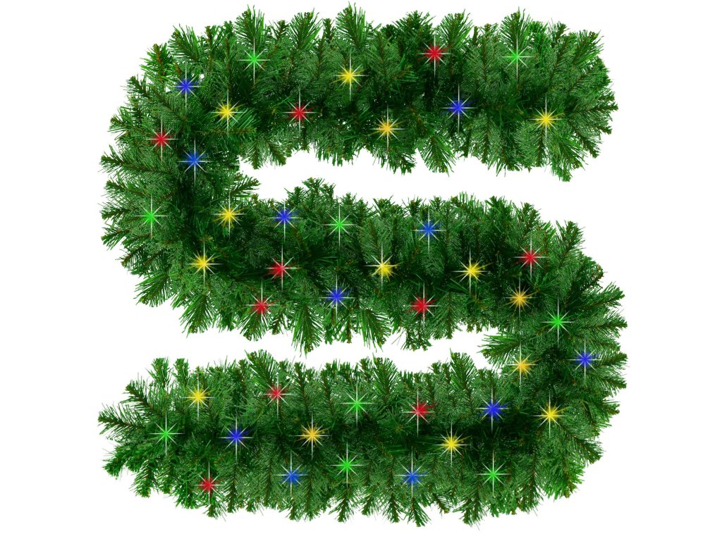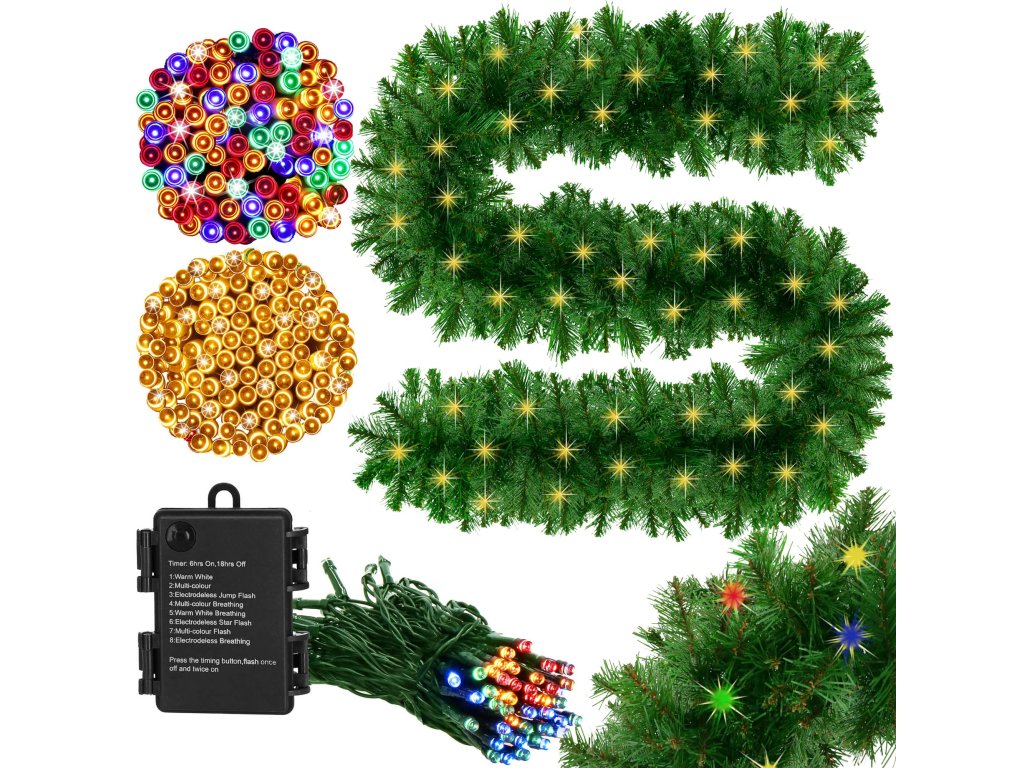 - Típus: mesterséges tűleveles ágakból álló girland világítással a készletben