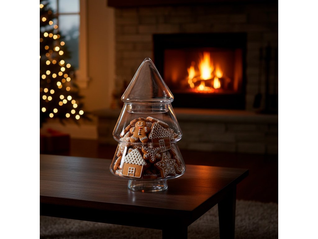 CA1458 ÜVEG TARTÁLY "FENYŐFA" 13 X 25 CM