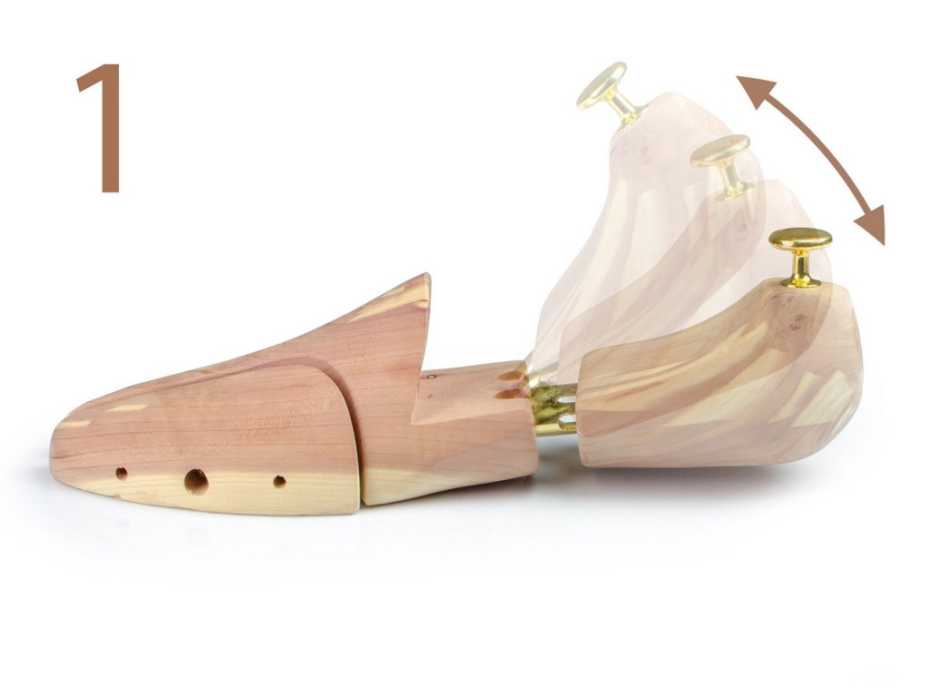 A cédrusfa felhasználásának köszönhetően a bemutatott tágítók modell a legnagyobb népszerűségnek és bizalomnak örvendenek az elegáns cipők tulajdonosai körében. Ezt három egyedi tulajdonságnak köszönheti: enyhe, aromás illatának, nagyon hatékony nedvszívó képességének és baktericid tulajdonságainak.