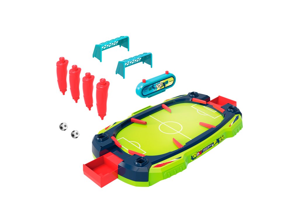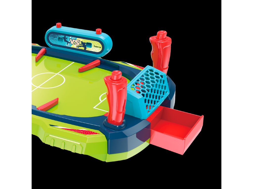 A Goal Soccer szabályai nagyon egyszerűek. Az Ön feladata gólt lőni az ellenfél kapujába. A készlet tartalmaz labdákat, amelyek fogantyúkra vannak rögzítve, és azokkal gombok megnyomásával tud mozogni. Emiatt minden játék nemcsak izgalmas küzdelem, hanem az ügyesség és reakciókészség edzése is.Kézi gól számláló Egyszerű összeszerelés Könnyű és hordozható Anyag: műanyag Súly: 480 g Méretek: 38 x 24 x 11,5 cm 3 évnél idősebbek számára alkalmas 2-4 játékos