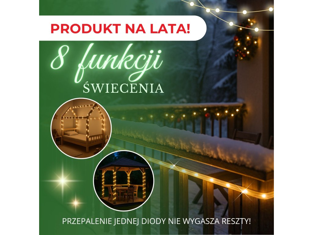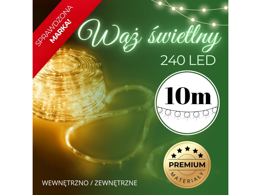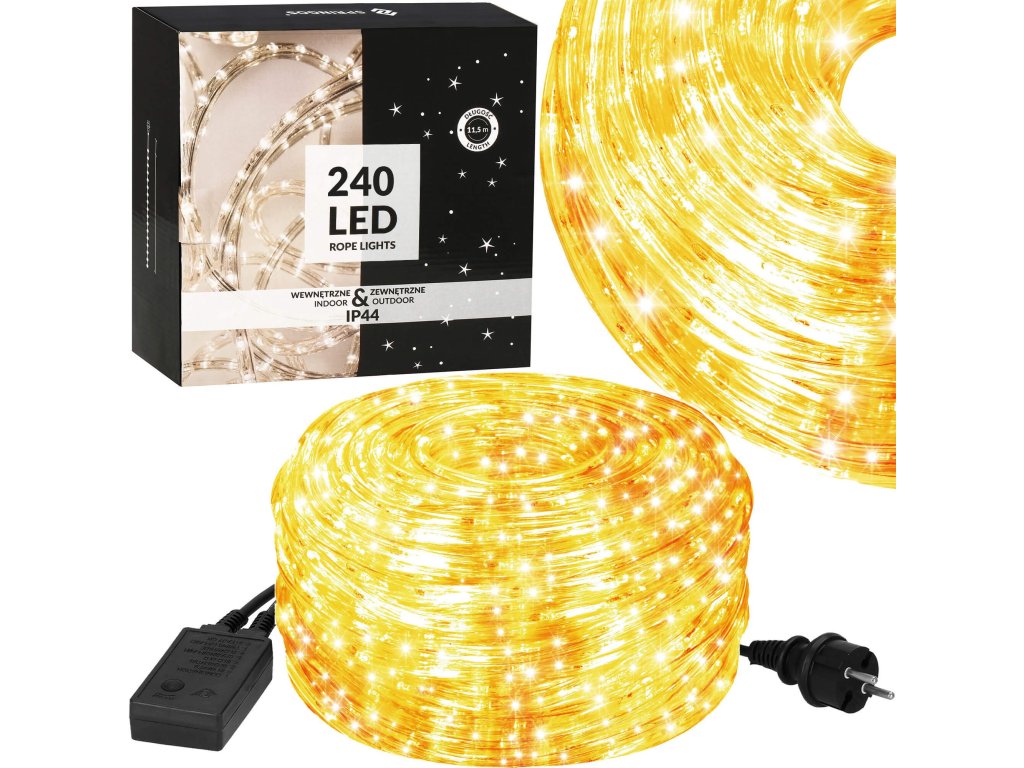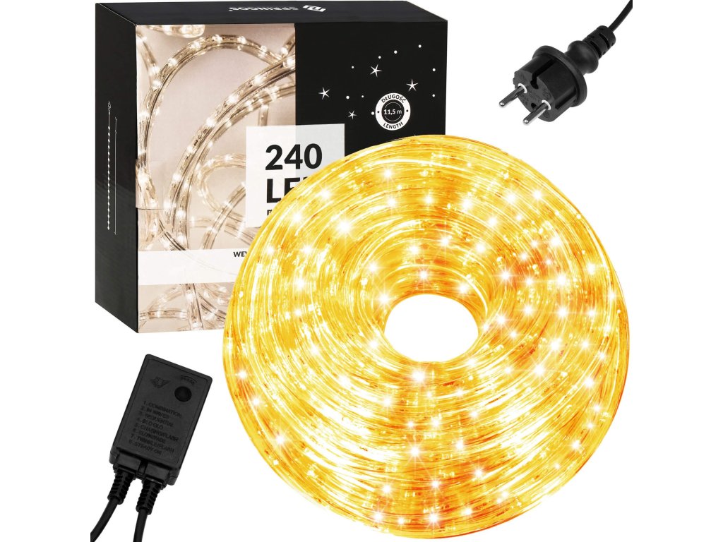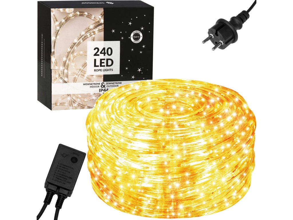 - Készlet hossza: 11,5 m (világító szakasz 10 m + kábel + csatlakozó)
