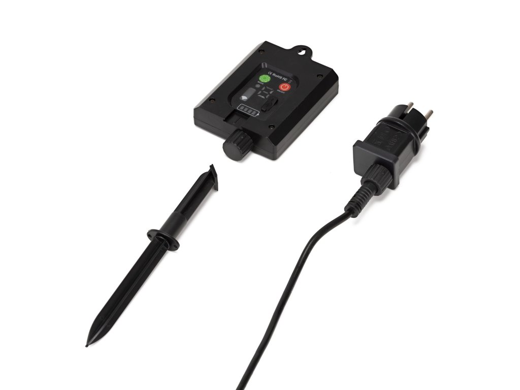 - A készlet tartalmaz egy két részes cölöp, amely lehetővé teszi az akkumulátor stabil földbe helyezését